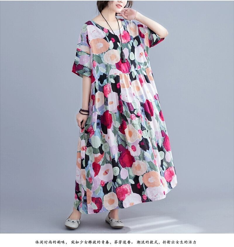 プラスサイズのドレスの女性の夏 2020 新しいファット MM プリント芸術的痩身ルーズエスニックスタイル綿とリネンのミドル丈スカート コットン 大きめサイズ サマー 夏物 sine25676913390