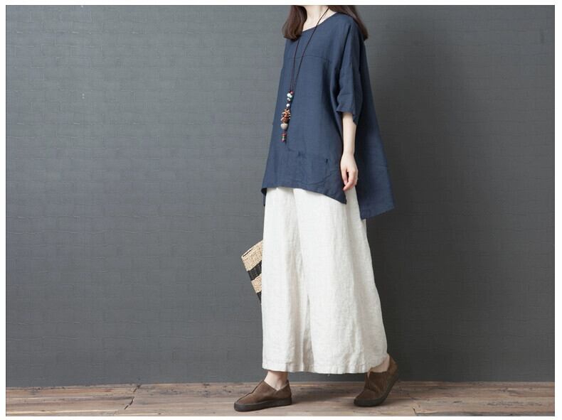 コットンとリネンの女性用スーツ、ミドル丈の半袖 T シャツ、ゆったりとしたプラスサイズの 7 分丈と 9 点のワイドレッグ パンツ、リネンの 2 点セット 大きめサイズ Tシャツ sine59470584305