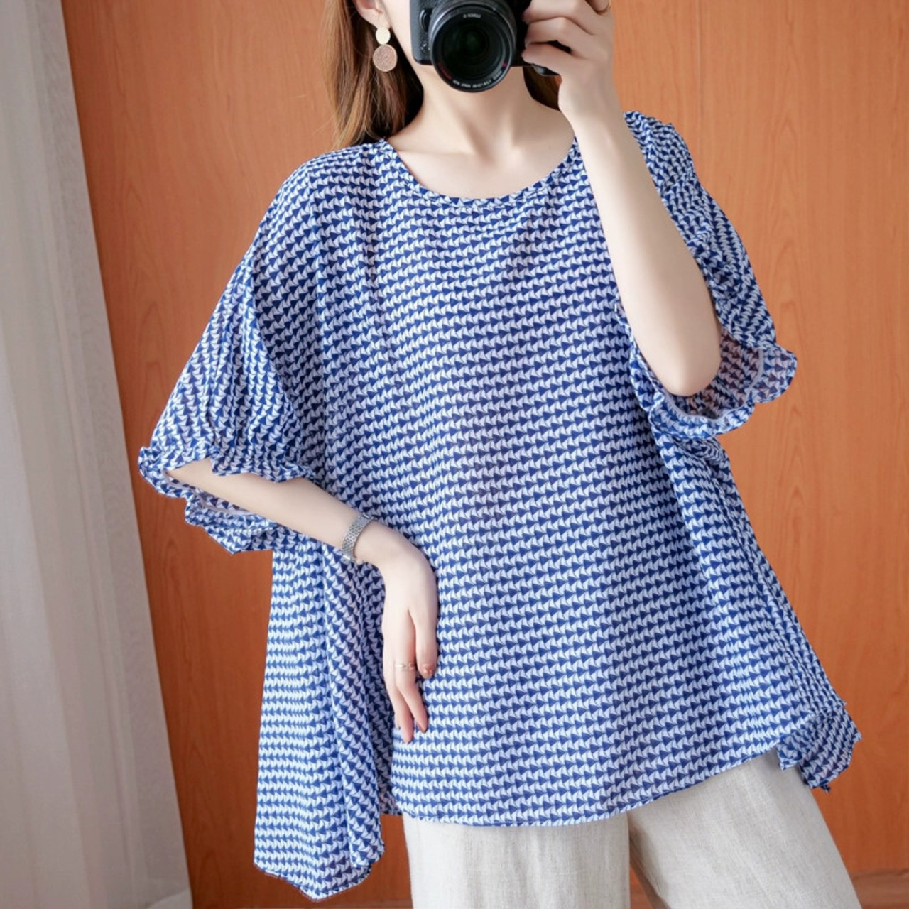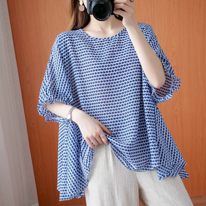 バットスリーブ シャツ Tシャツ レディース 夏 プラスサイズ プラスサイズ 200 ポンド 不規則痩身 老化防止 プリント 七分袖 トップ 大きめサイズ サマー 夏物 sine56964468667