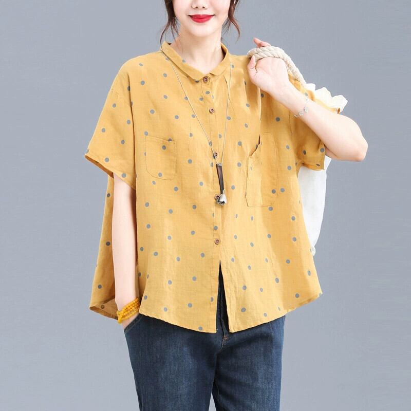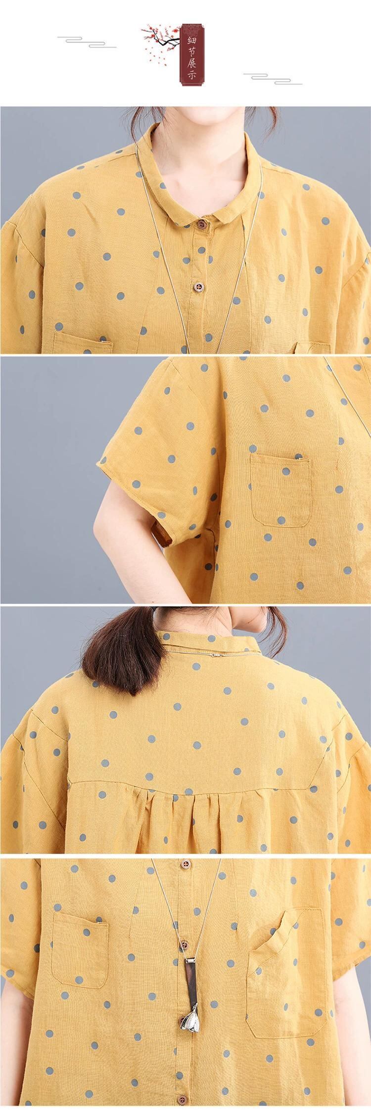 大きいサイズの綿とリネン半袖シャツ Tシャツ女性の夏のルーズ水玉不規則な痩身スタイルリネンベビードールトップ コットン 大きめサイズ サマー 夏物 sine47553533744