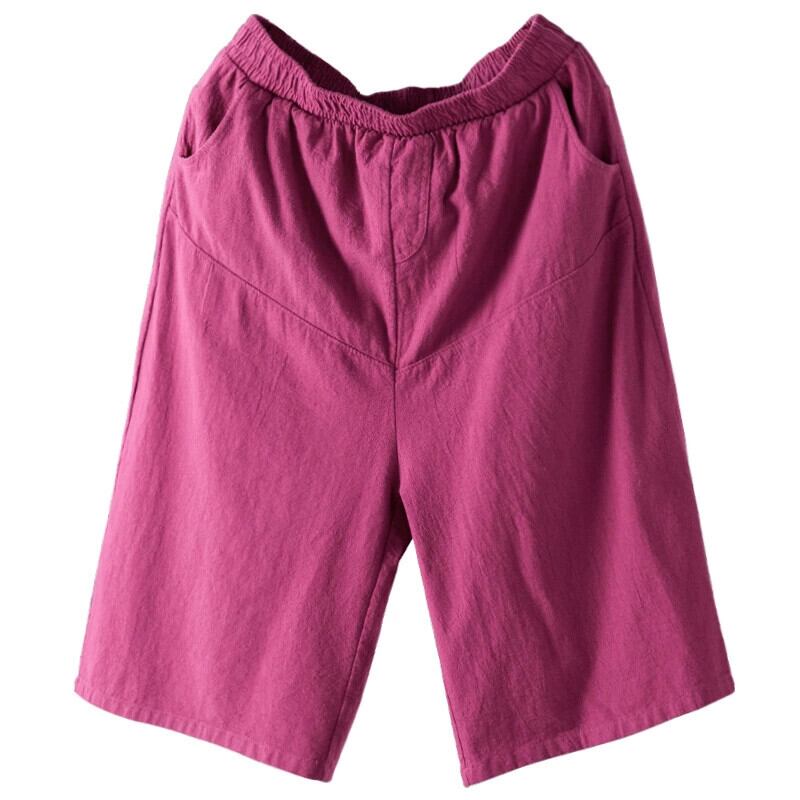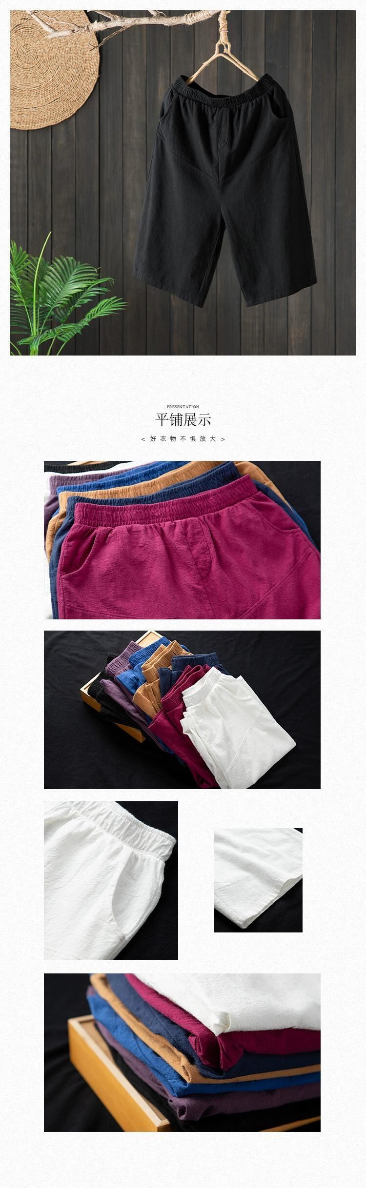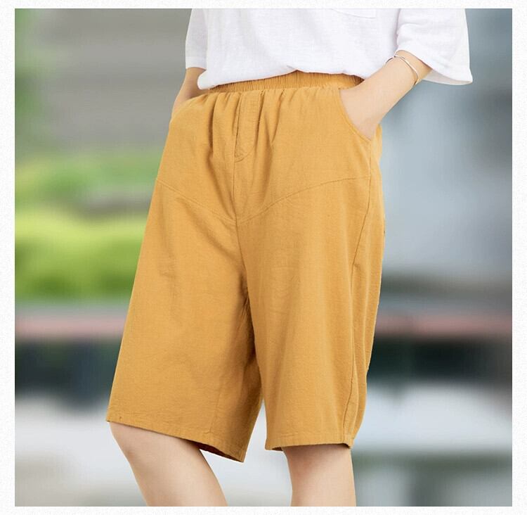 リネン 5 点パンツの女性、夏の新しいゆったりとした大きいサイズのスタイルのワイドレッグカジュアルミッドパンツ 6 点ストレートの綿とリネンのショートパンツの女性 コットン 大きめサイズ サマー 夏物 ショーツ ブルマー sine1559566371