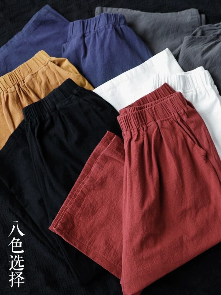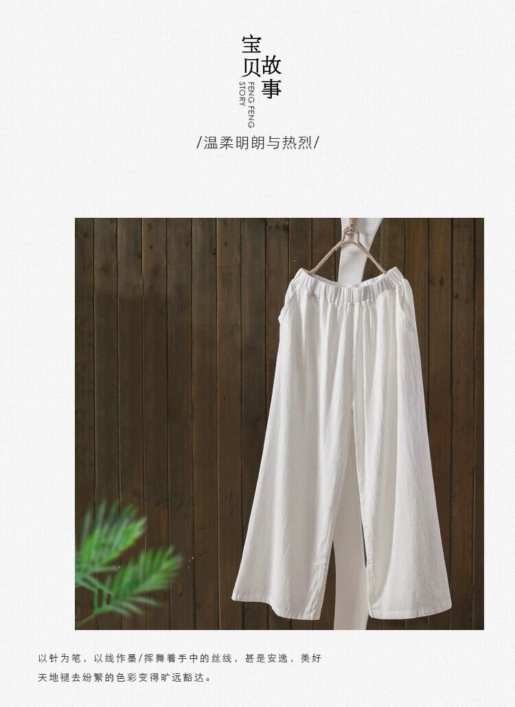 コットンとリネンのワイドレッグパンツレディース、ルーズプラスサイズ、レディースクロップドパンツ、スタイル多彩な学生カジュアルストレートレッグリネン9ポイントパンツ 大きめサイズ sine68376192237