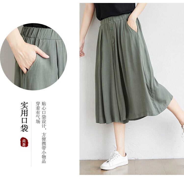 コットンとリネンのワイドレッグパンツの女性の夏 2021 新しいルーズプラスサイズの婦人服太いヒップをカバーし、スリムカジュアルリネン七分丈パンツスカート 大きめサイズ サマー 夏物 sine35886800541