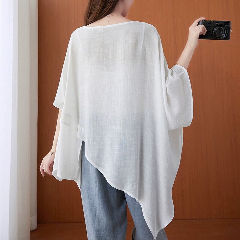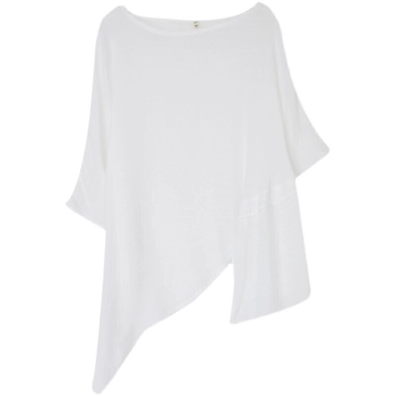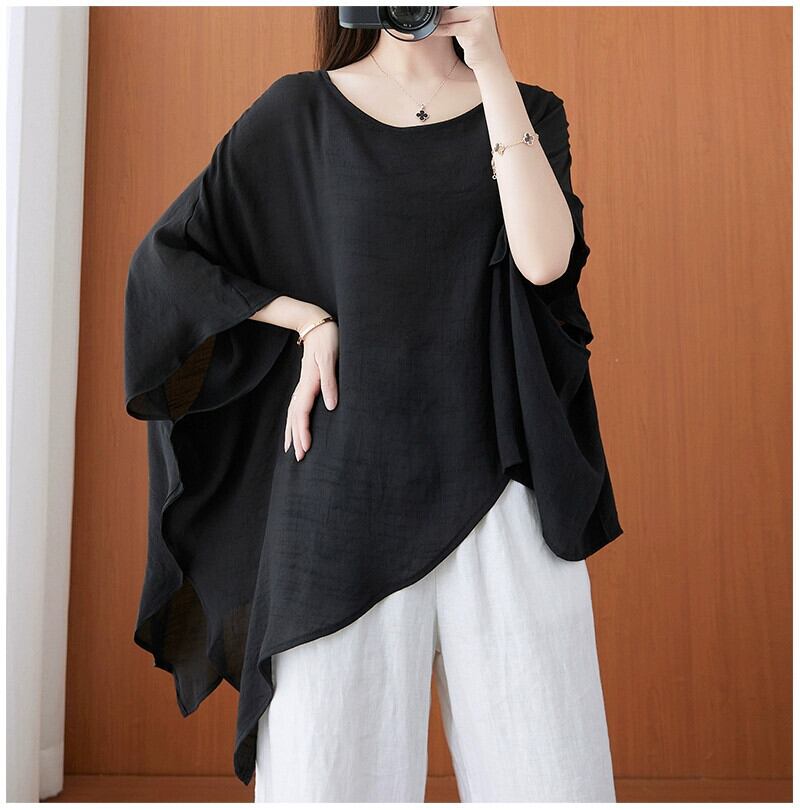 不規則な半袖トップス女性、夏スタイル、ゆったりとしたデザイン、黒のお腹カバーバットシャツ、Tシャツ、大きいサイズの女性 ブラック 大きめサイズ サマー 夏物 sine37538246097