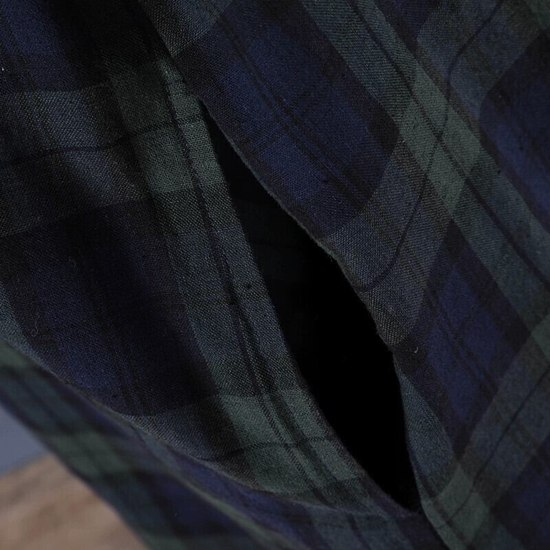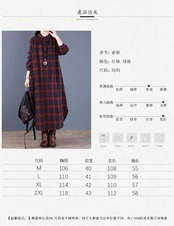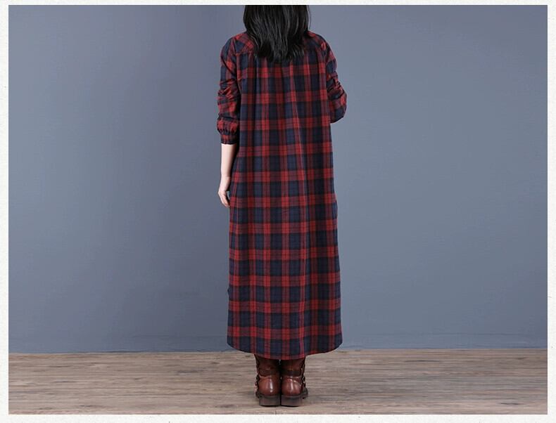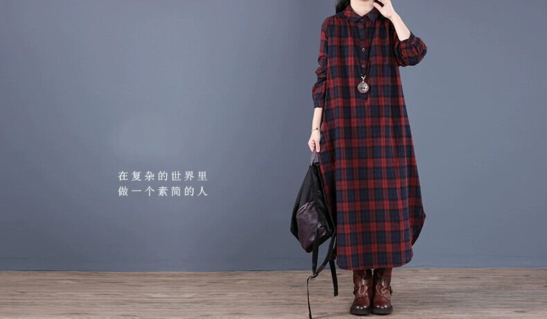 コットンとリネンのドレスの女性の春と秋のゆったりとした大きいサイズのラペルレトロチェック柄カジュアル長袖リネンミドル丈シャツドレス ロング 大きめサイズ スプリング 春物 オータム 秋物 sine83995990110