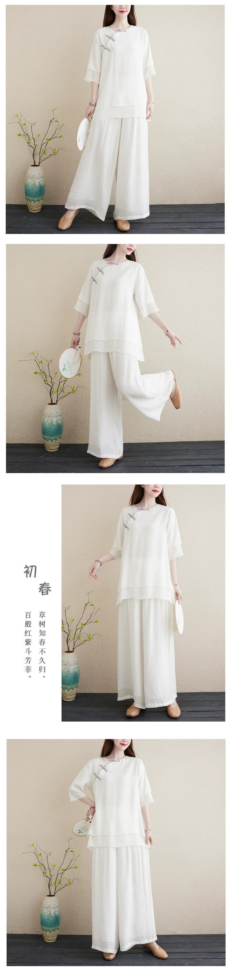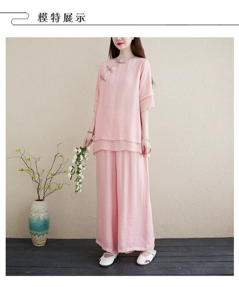 プラスサイズの女性のコットンとリネンのツーピースミッドレングス半袖シャツTシャツカジュアルワイドレッグパンツスカート禅ヨガスーツ 大きめサイズ sine62999887482