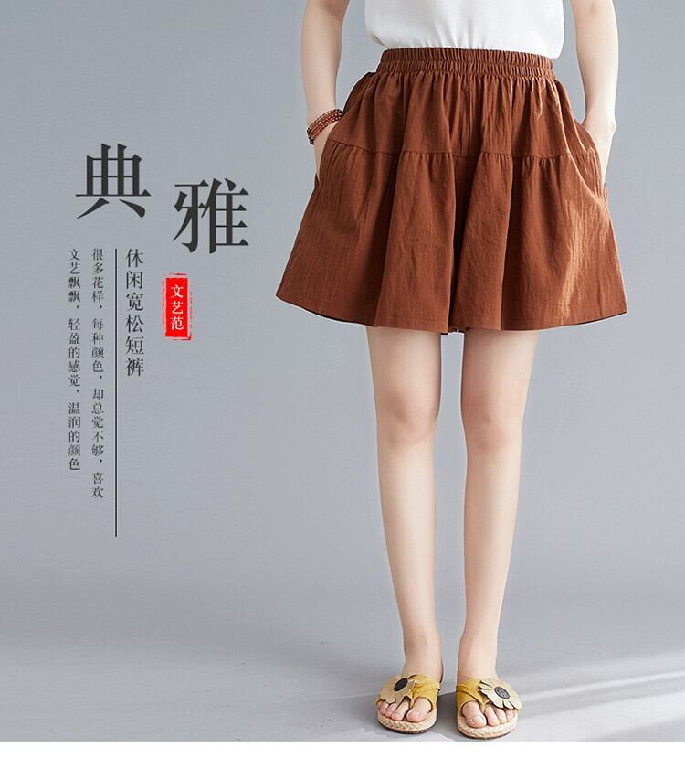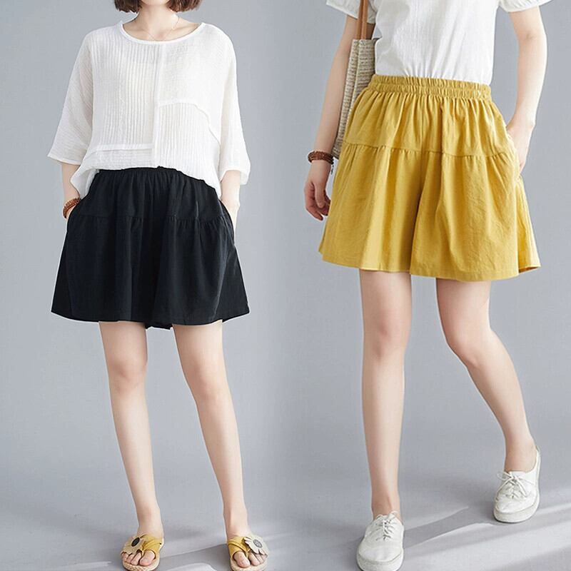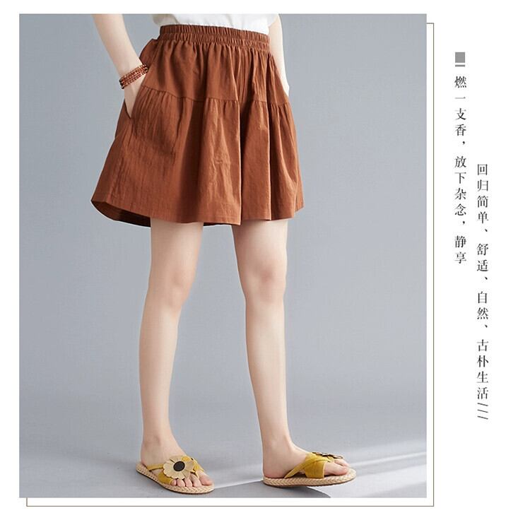 リネン A ラインショーツ女性夏 2021 新しいルーズ大きいサイズ脂肪ミリメートル無地ハイウエストカジュアル綿とリネンのワイドレッグパンツスカート ハイウェスト コットン 大きめサイズ サマー 夏物 ブルマー Aライン ワイドパンツ ソリッドカラー sine86280490554