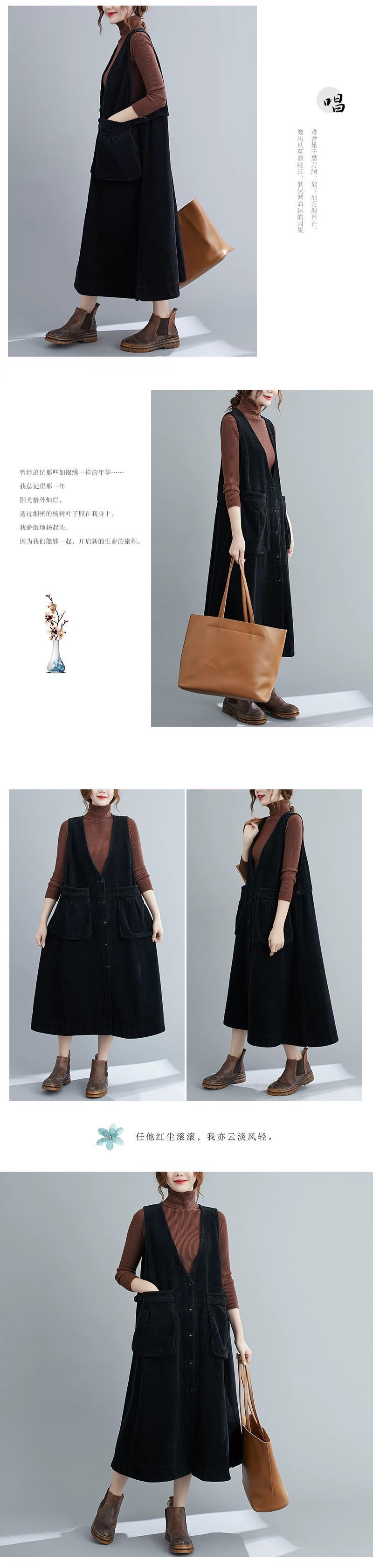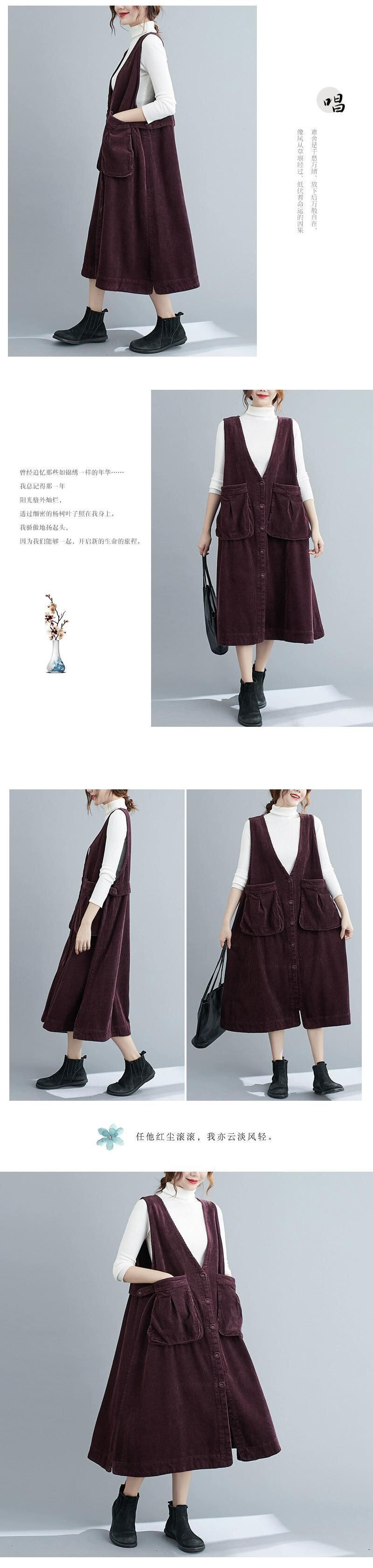 レトロプラスサイズの女性のコーデュロイベストドレス秋と冬の新しいルーズ V ネック年齢軽減パッチポケットミッドレングスドレス 大きめサイズ オータム 秋物 ウィンター 冬物 Vネック sine90680084229
