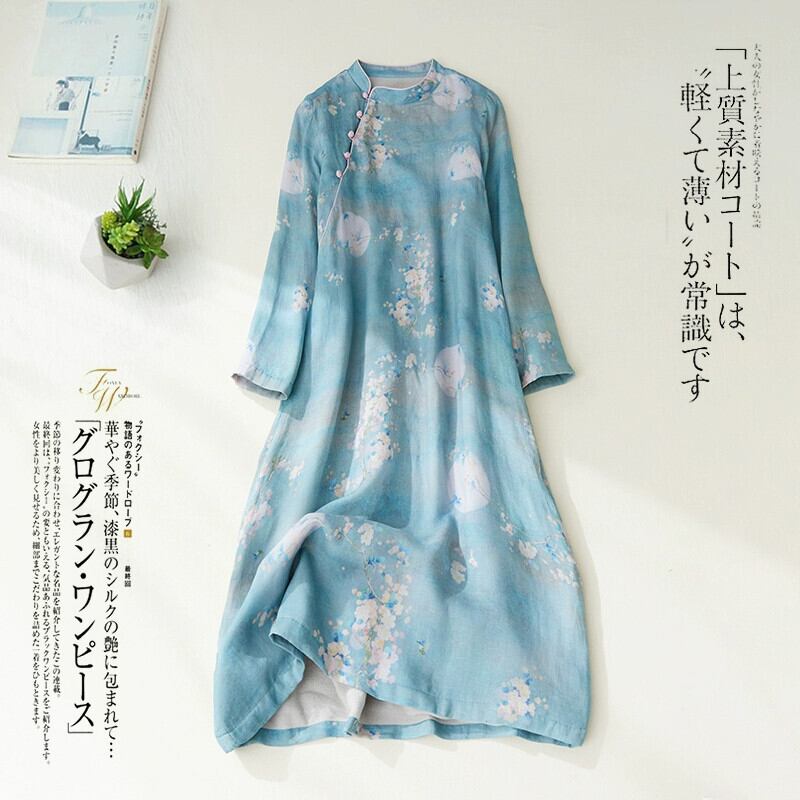モールビッグネーム撤退最後の在庫女性のレトロプリントバックルチャイナロングスカートルーズベルベット肥厚ドレス sine68286063604