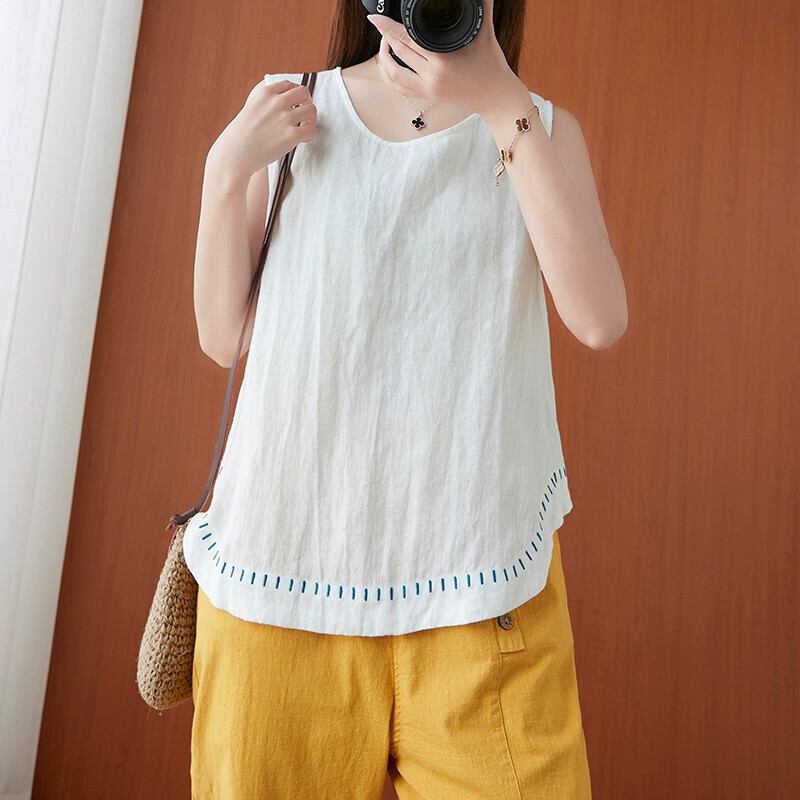 ベスト Tシャツ女性 2021 新しい夏のスタイルルーズ脂肪ミリメートルステッチ無地インナーノースリーブカジュアルトッププラスサイズの婦人服 大きめサイズ サマー 夏物 ソリッドカラー sine50727177473