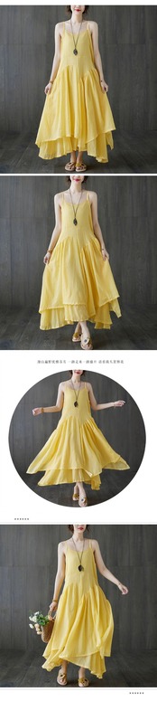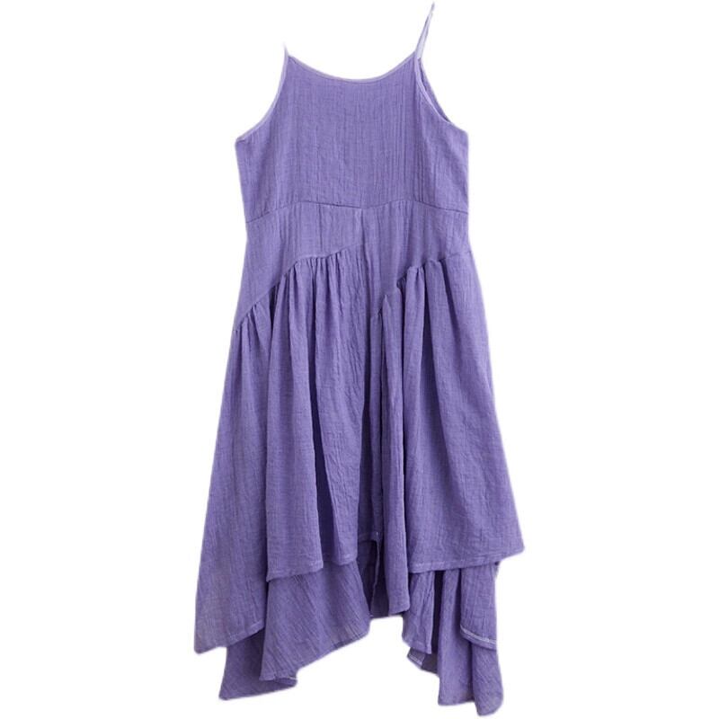 サスペンダードレスの女性の夏 2021 ゆったり大きいサイズソリッドカラー芸術的な不規則な大きな裾綿とリネンロングスカート コットン 大きめサイズ サマー 夏物 sine71389746234