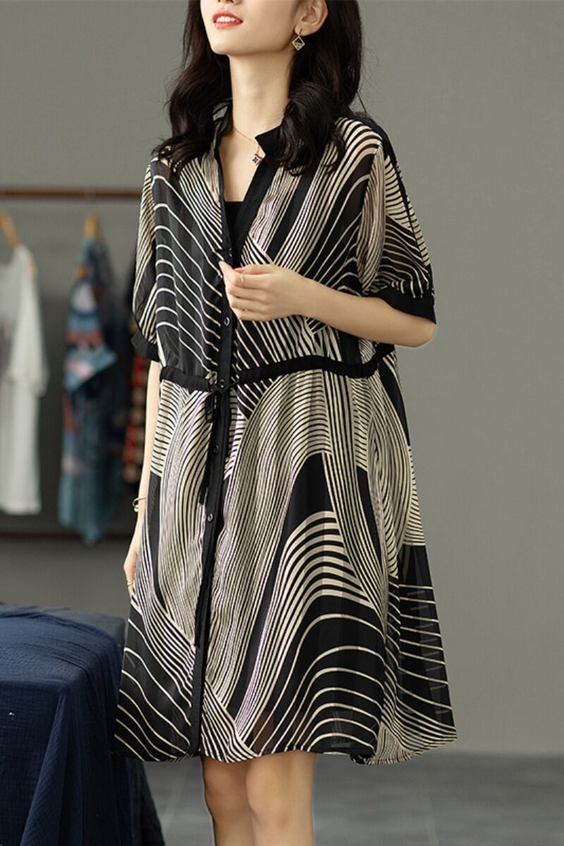 年齢を減らすプラスサイズの女性の夏の新しいファッションストライプシャツドレスミッドレングスカジュアルサスペンダードレス 2 点セット 大きめサイズ サマー 夏物 sine57767049937