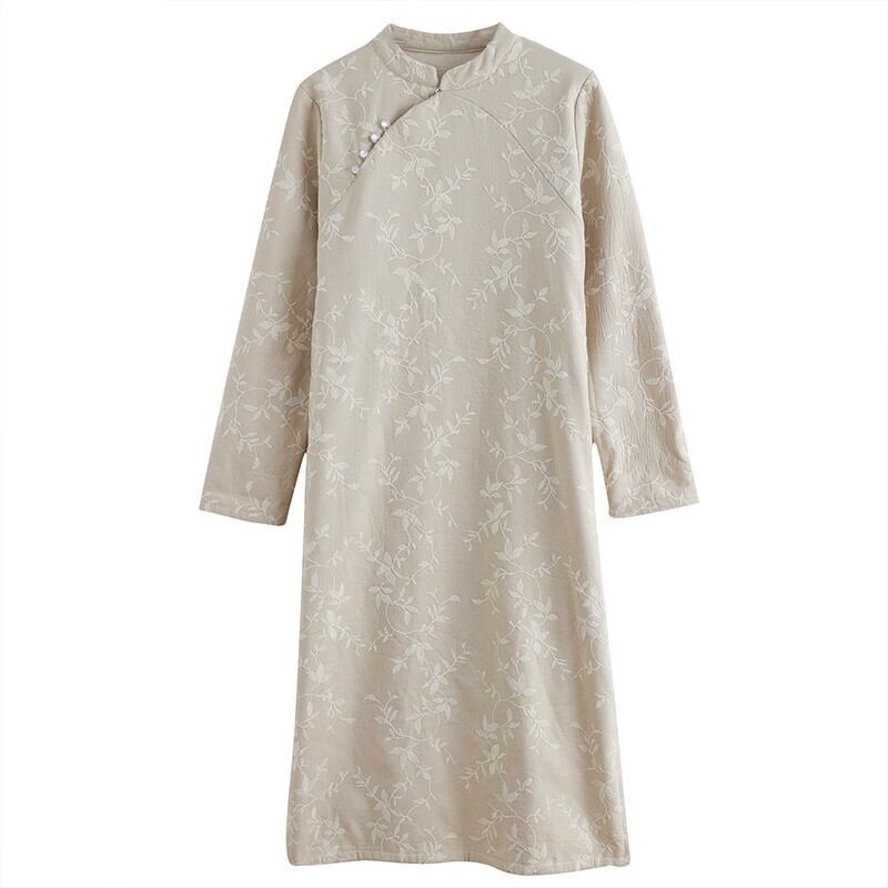 ディスカウント ストア ショッピング モールの女性の中国風花柄チャイナ ロング スカートとベルベットの厚みのある綿とリネンの長袖ドレス コットン sine27104240298