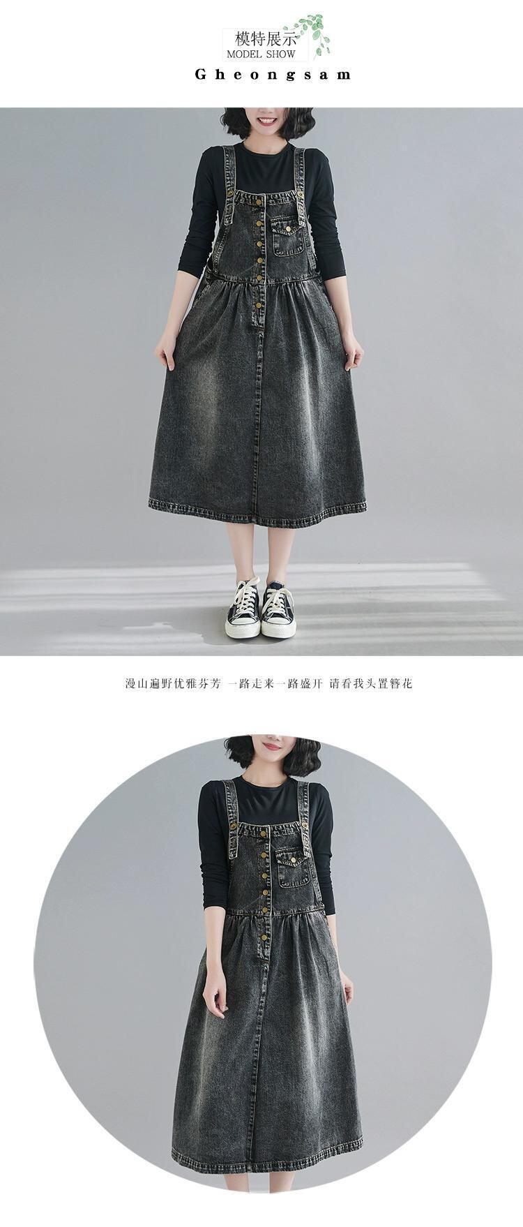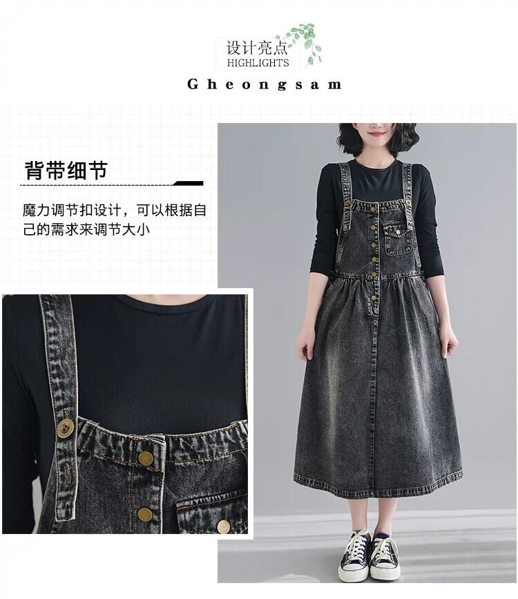 文学プラスサイズの女性のデニムサスペンダースカート春夏 2021 ルーズオールドスタイル隠し肉アウターサスペンダーミドル丈スカート 大きめサイズ スプリング 春物 サマー 夏物 sine65303909800