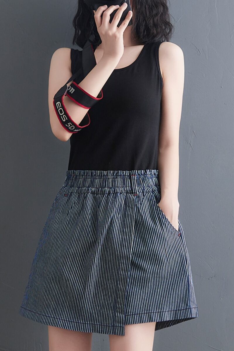 ストライプウォッシュジーンズ夏弾性ウエストパッチパンツカジュアルワイドレッグパンツルーズ大きいサイズ万能パンツ女性 エラスティック 伸縮 大きめサイズ サマー 夏物 ワイドパンツ sine55956378413