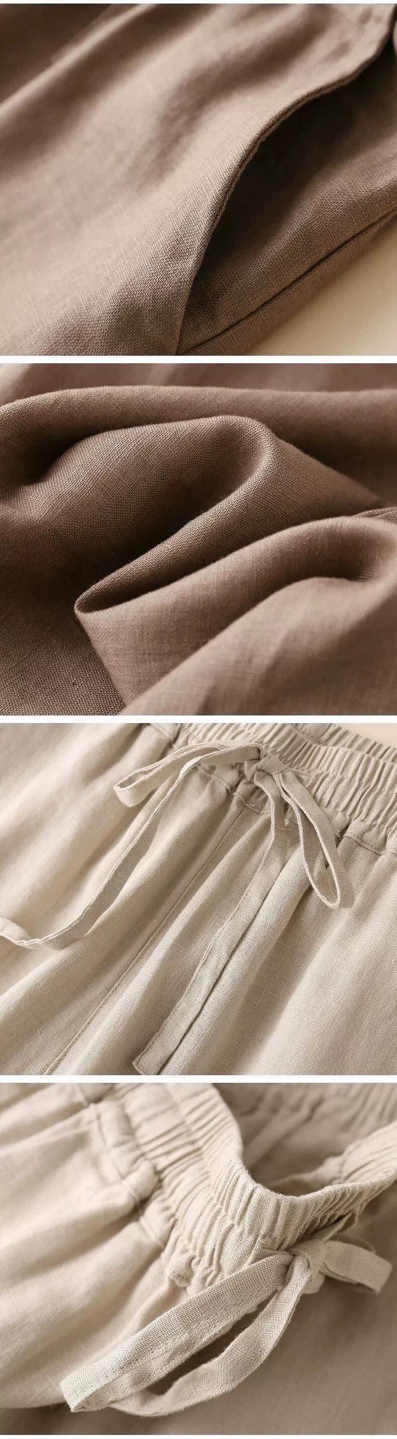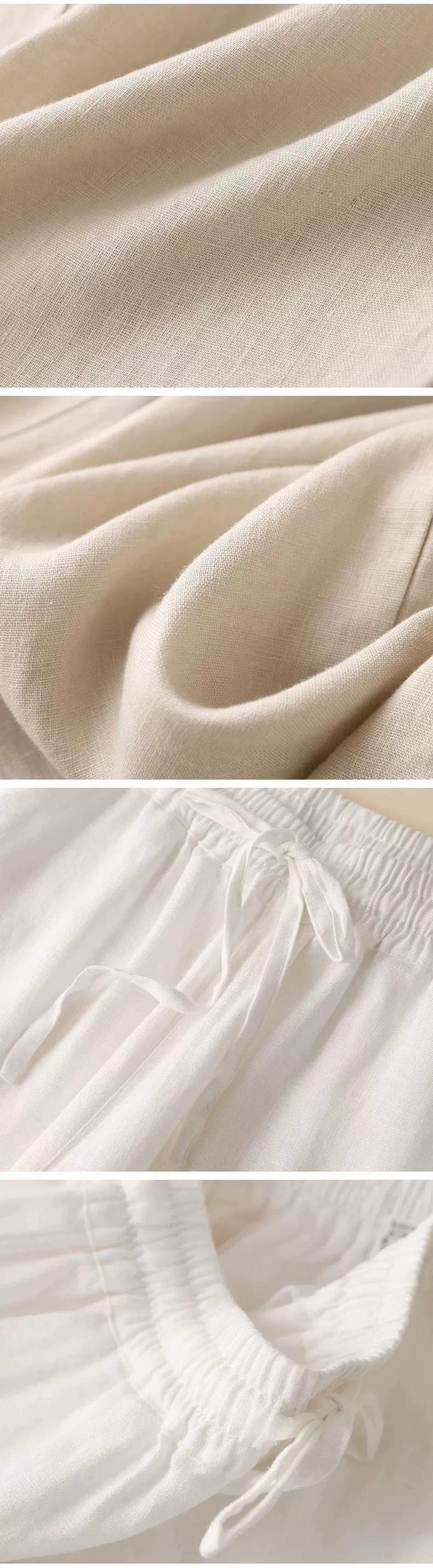 綿とリネンのワイドレッグパンツ、夏のファットmmの女性、芸術的なレトロスリミングハイウエストドローストリングパンツ、ルーズストレートリネンパンツ コットン サマー 夏物 sine19297681571
