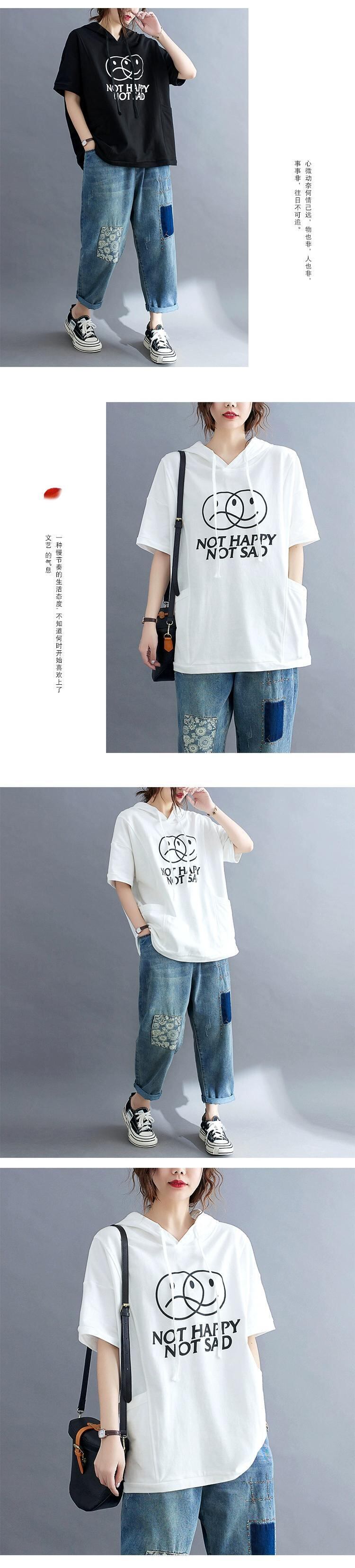 フード付き半袖 Tシャツ女性の夏 2021 新しいルーズファットシスター 200 ポンドスマイリーフェイスプリント大きいサイズの女性の腹カバートップ 大きめサイズ サマー 夏物 sine85567203760