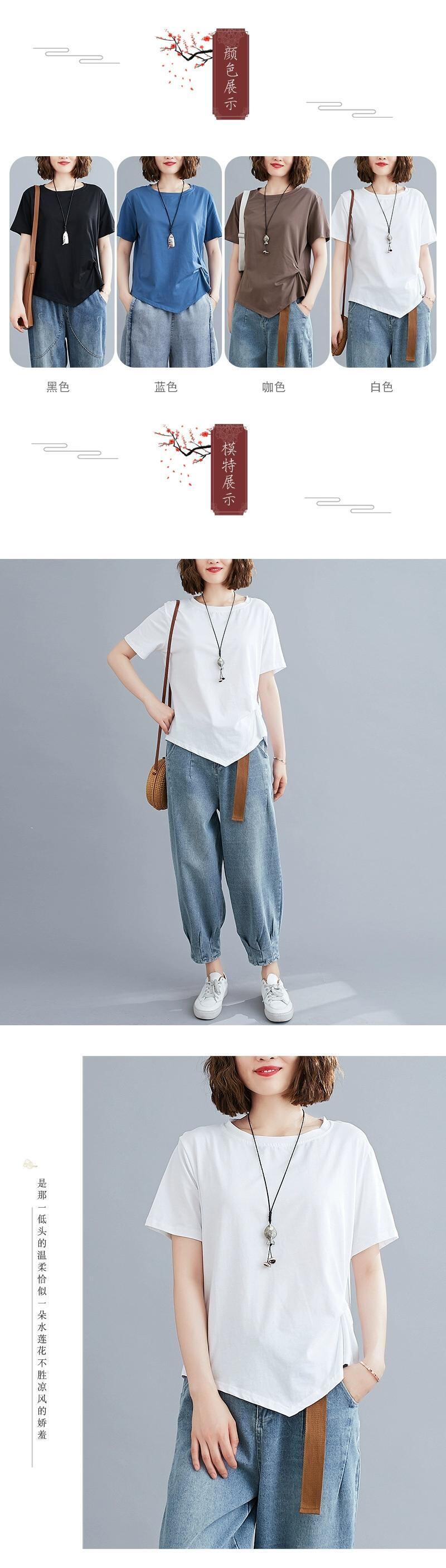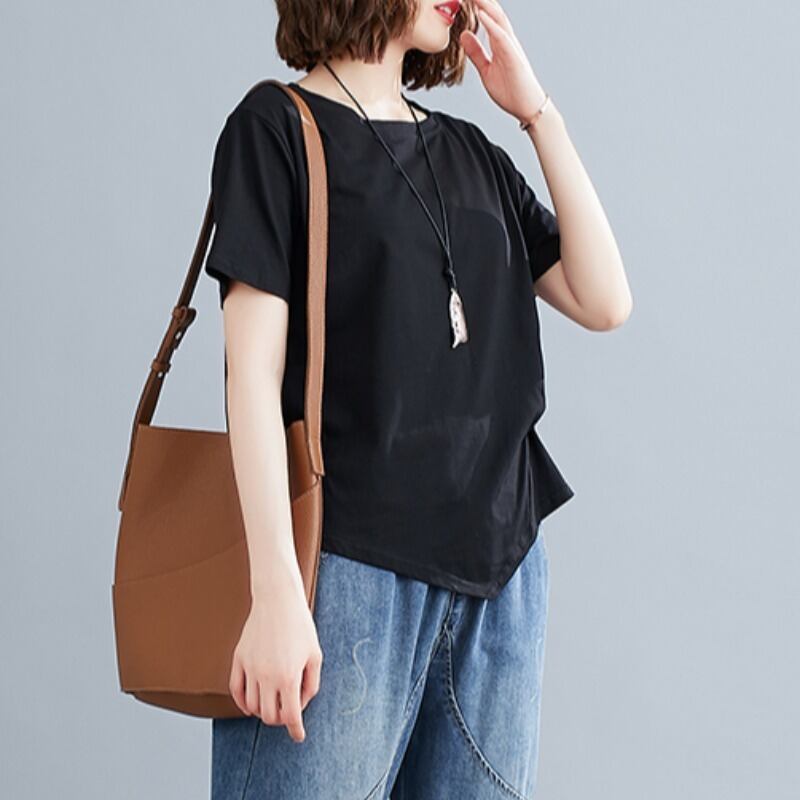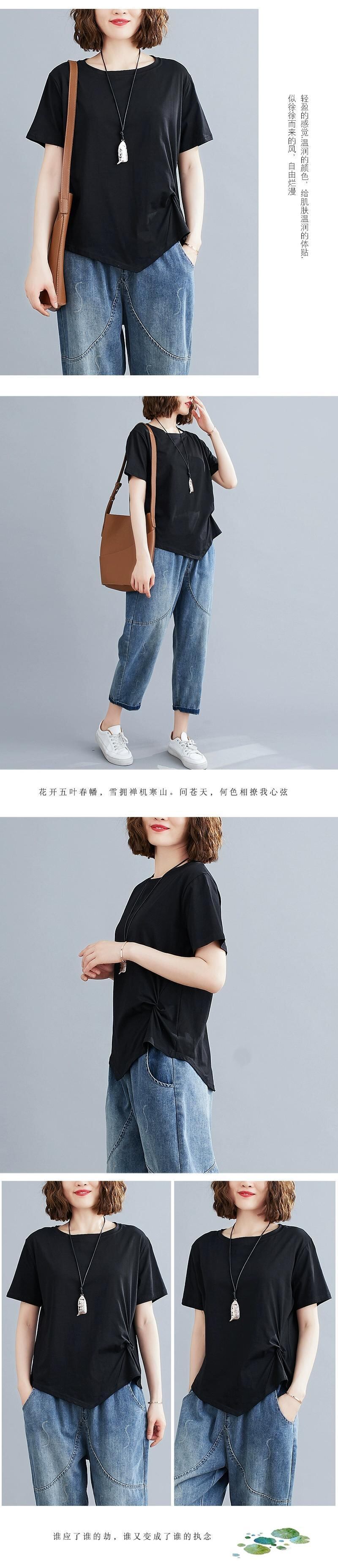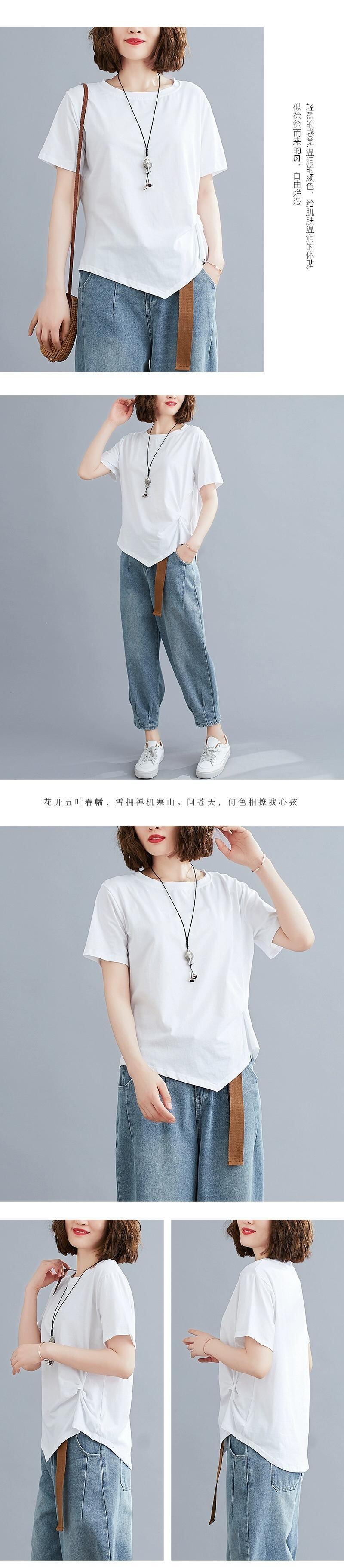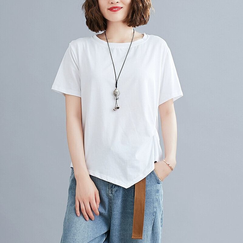 無地コットン Tシャツ夏半袖ラウンドネックボトシャツ裾プリーツルーズ不規則な Tシャツトップ女性 サマー 夏物 Oネック ソリッドカラー sine35203373741