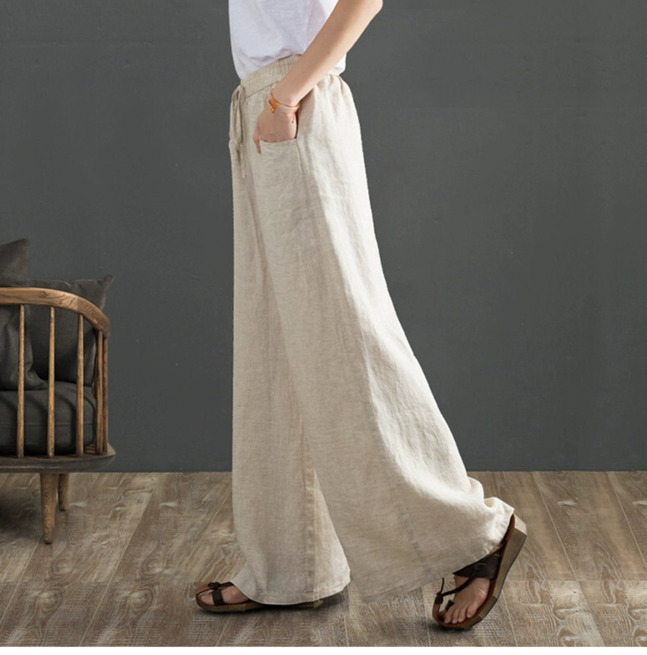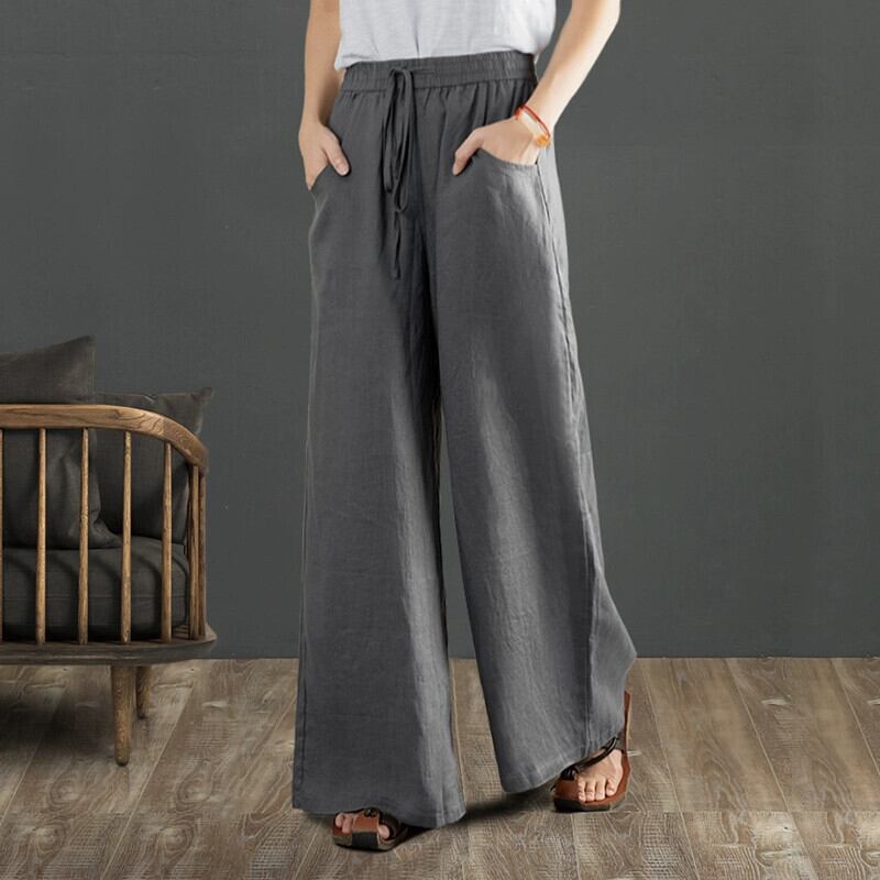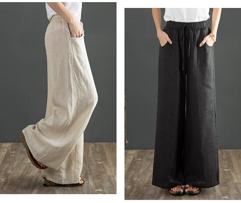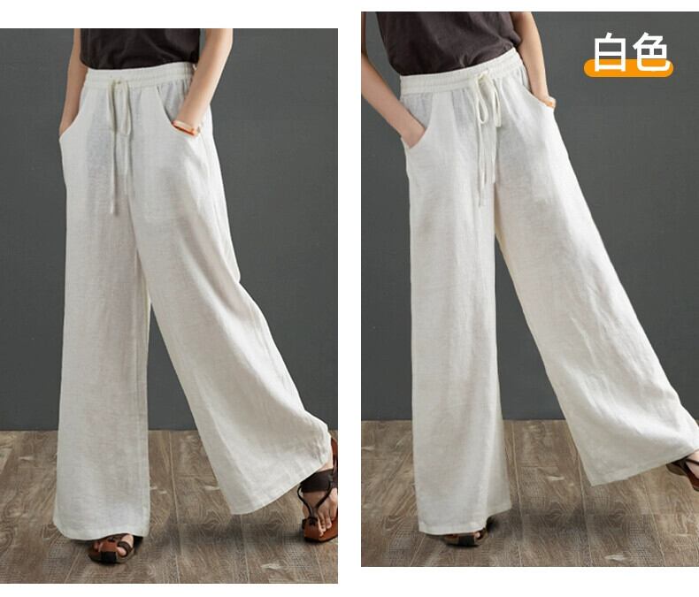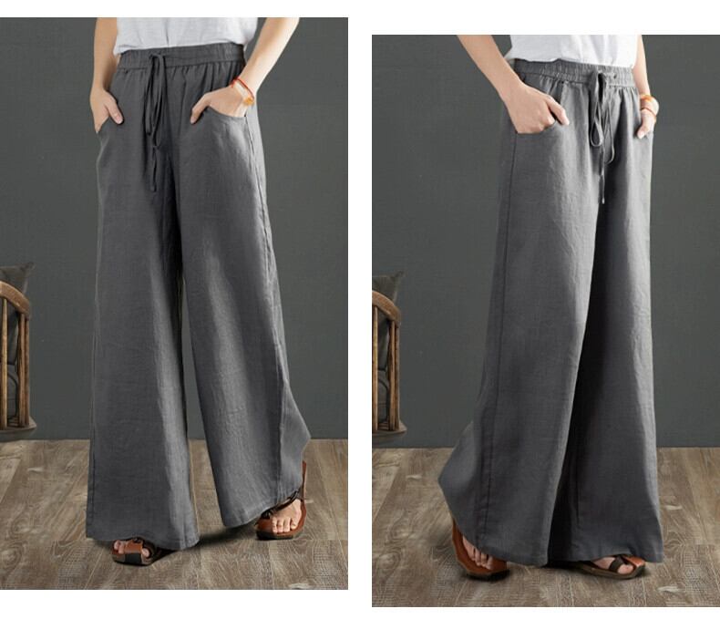 コットンとリネンのワイドレッグパンツの女性、春と秋のカジュアルな文学的なルーズなヨガ禅レースアップウエストとドレープのあるリネンのフロアレングスパンツ スプリング 春物 オータム 秋物 sine8569786625