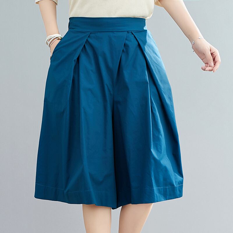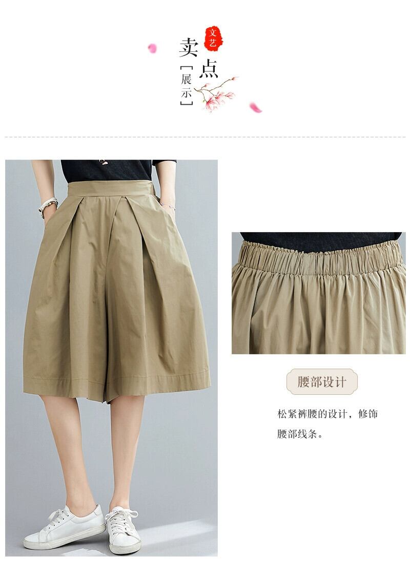 無地のワイドレッグパンツ、ゆったりとした太いmmの弾性ウエスト、股間をカバーし、肉を隠し、スリムに見せる、カジュアルなAラインの5ポイントパンツスカート、プラスサイズの婦人服 エラスティック 伸縮 大きめサイズ ソリッドカラー sine17275957295