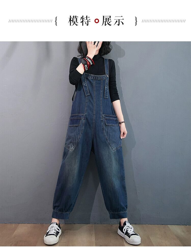 デニムオーバーオール女性 2020 秋冬ルーズな大きいサイズのストライプパッチステッチ脚痩身カジュアルキャロットパンツ 大きめサイズ オータム 秋物 ウィンター 冬物 sine38365699278