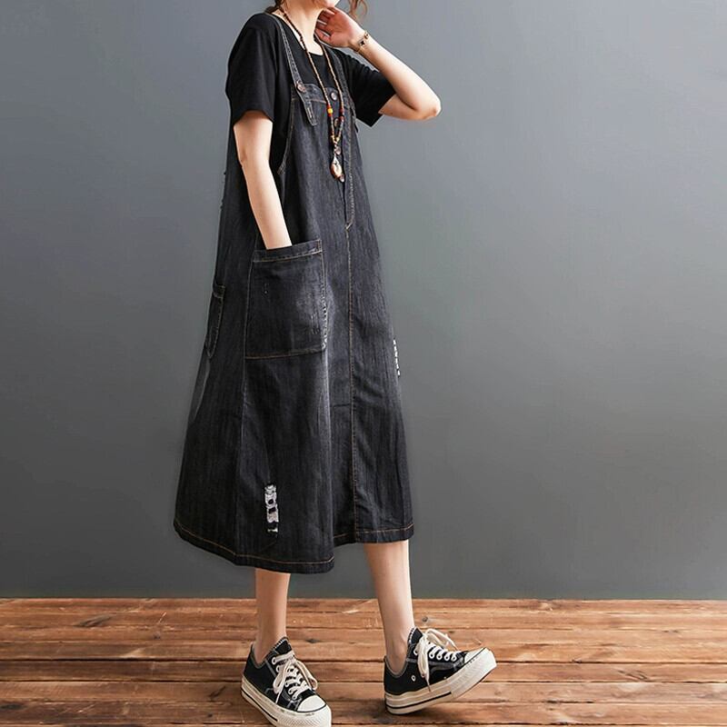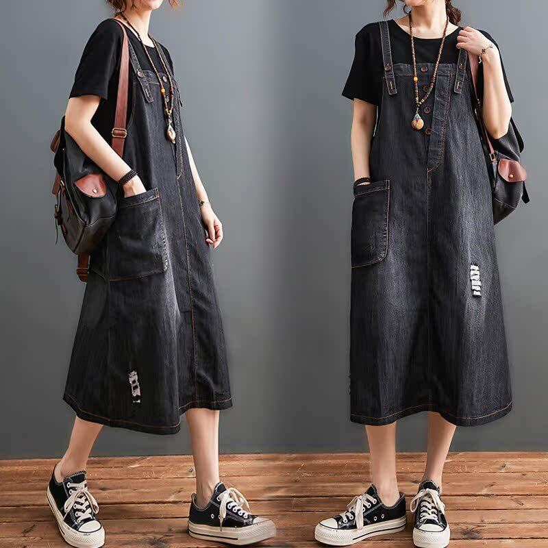 パーソナライズされたポケットデニムサスペンダースカートプラスサイズの女性のルーズルーズ脂肪ミリメートル隠し肉バージョン夏ミッドレングスサスペンダードレス 大きめサイズ サマー 夏物 sine43894183938
