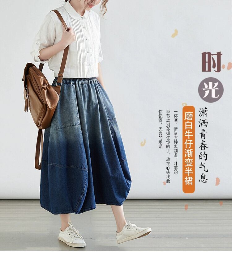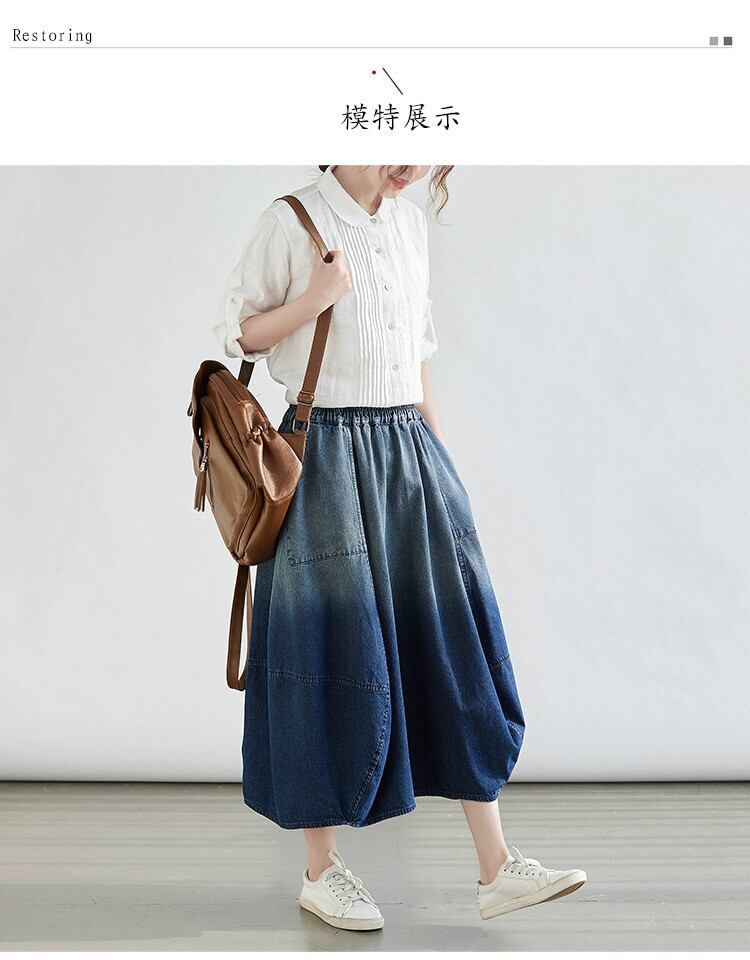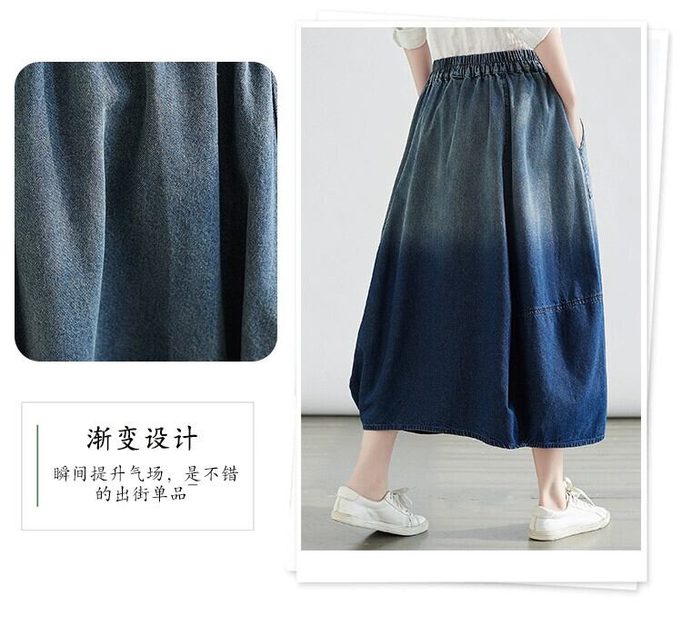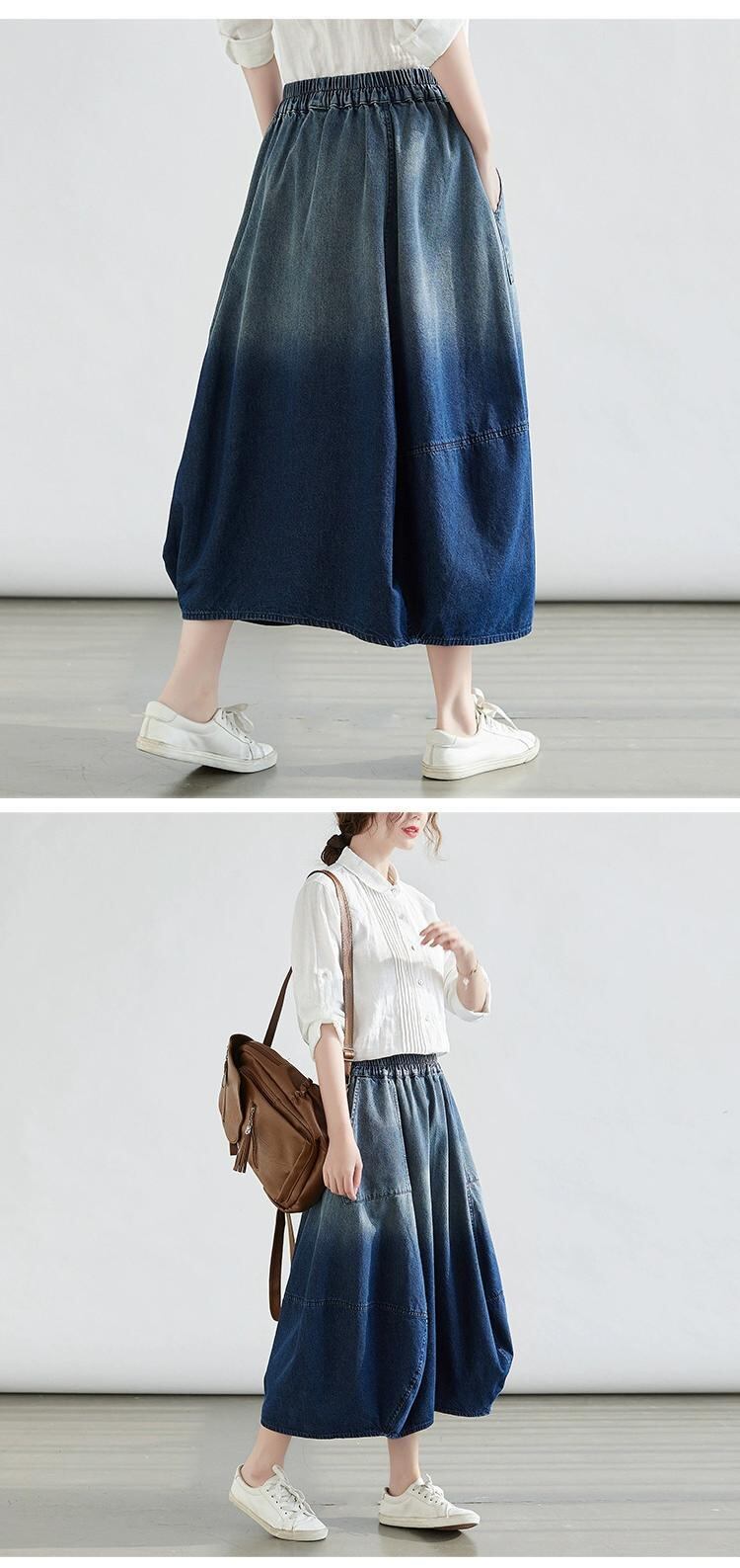 グラデーションステッチウォッシュデニムスカートファットmmプラスサイズレディース弾性ウエストミッドレングス股カバーランタンスカート夏 エラスティック 伸縮 大きめサイズ サマー 夏物 sine94316477794