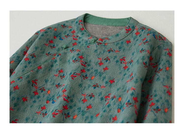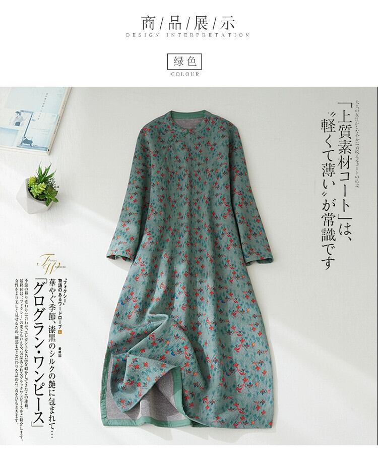 カウンタークリアランスクリアランス最後の在庫女性のチャイナフローラルディスクバックルチャイナロングスカートプラスベルベットと厚みのあるコットンとリネンのドレス 花柄 sine15766002887
