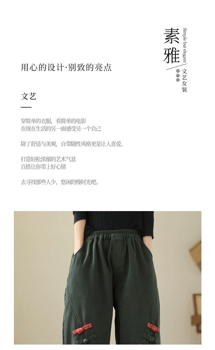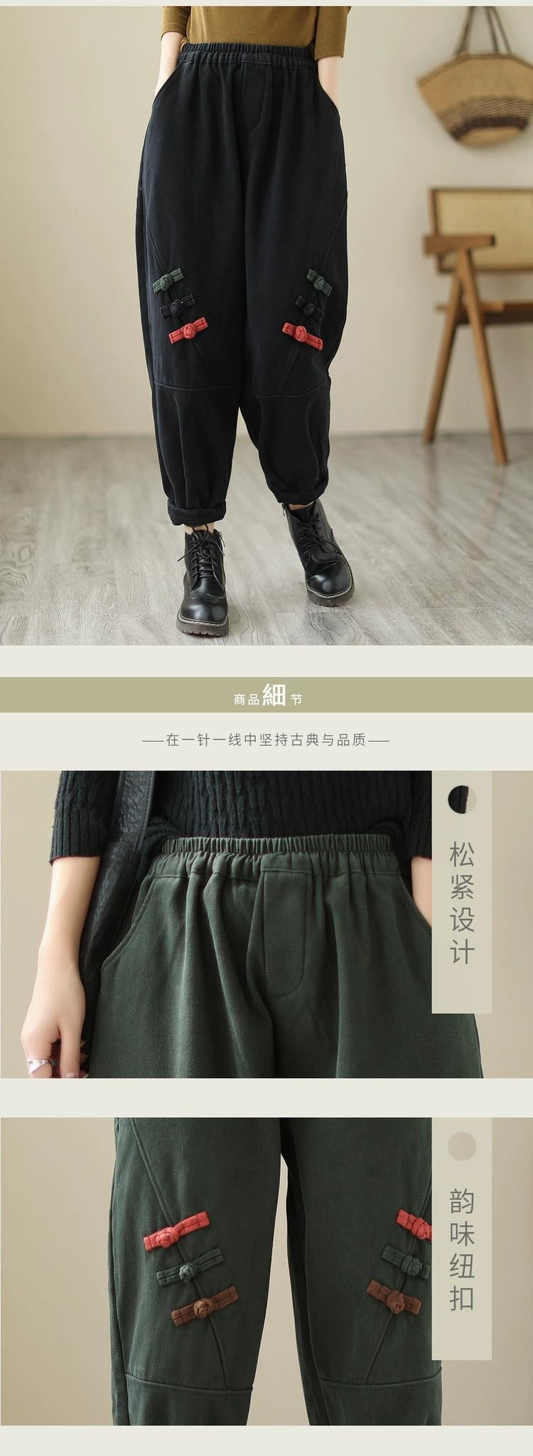 eign trade 割引ブランドテールグッズ女性の芸術的なスプライシングディスクバックルハーレムパンツルーズハイウエストプラスベルベット肥厚カジュアルパンツ ハイウェスト sine40707861486
