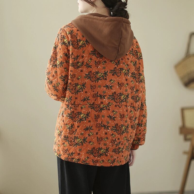 ディスカウントストアショッピングモールの女性のレトロな花柄キルティングフード付きコットンコートジャケット緩い肥厚暖かいコットンコート sine68713074995
