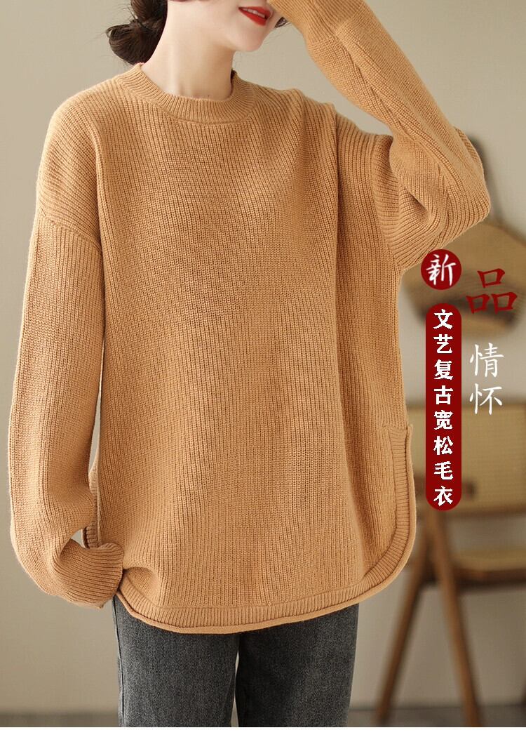 クリアランスカウンター最後の在庫女性の冬無地多目的セータートップルーズカジュアル長袖セーター ロング ウィンター 冬物 ソリッドカラー sine65772695996