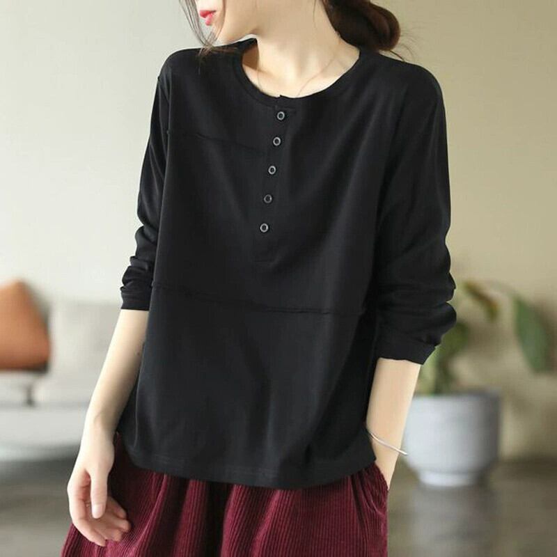 クリアランス漏れ~eign tradeカウンターブランド撤退レディースレトロボトリングシャツトップス痩身インナーカジュアル長袖Tシャツ ロング sine12602642625