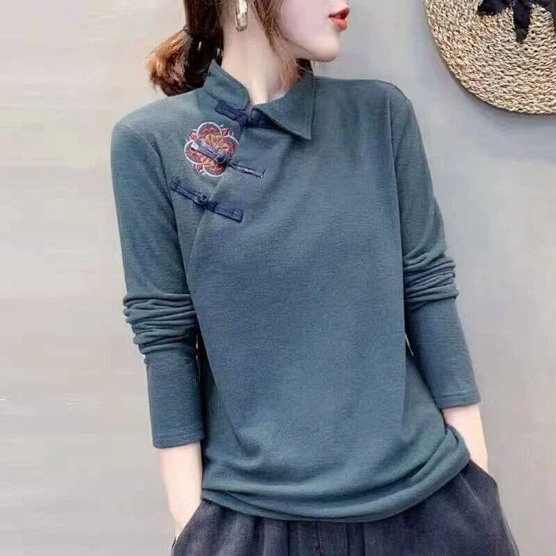 クリアランスリーク〜カウンタービッグネームレディーススタンドアップカラージャーマンベルベットボトムトップスレトロボタン刺繍斜め前立て長袖Tシャツ ロング レッド sine64895960224