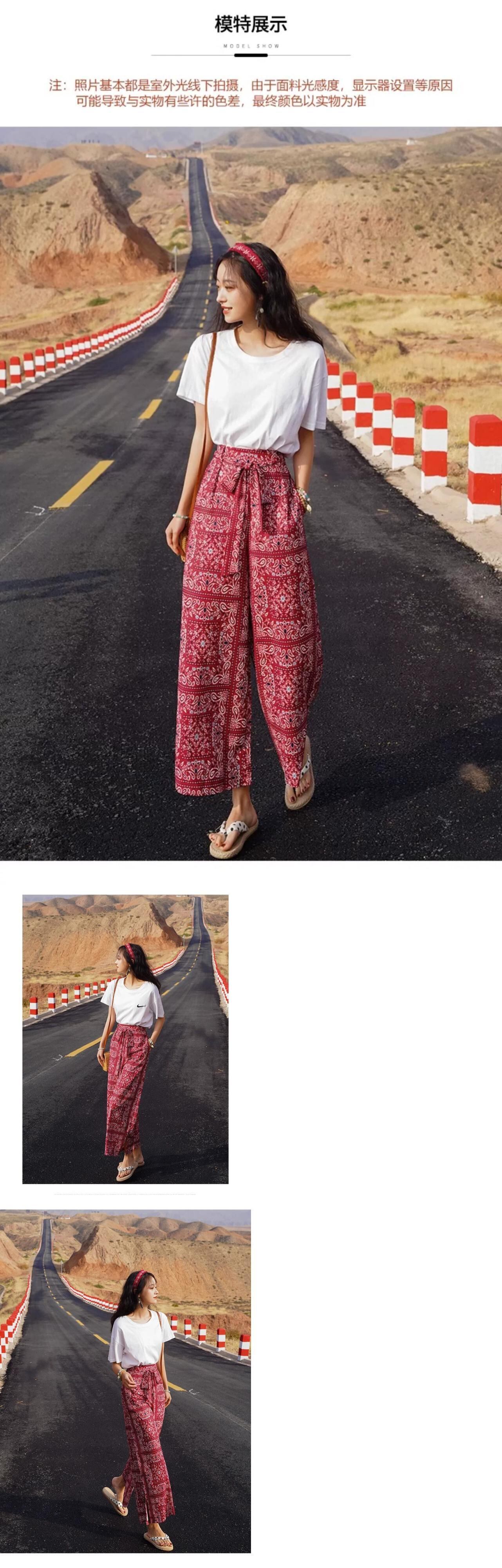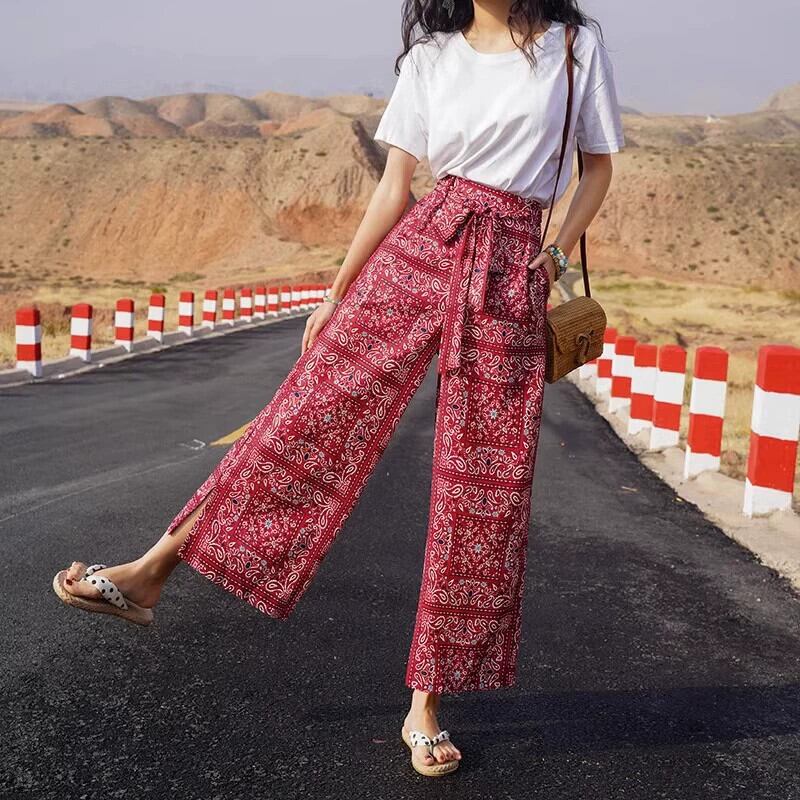 モールのビッグネームがカウンターから撤退エスニックスタイルの花柄カジュアルパンツレディースハイウエストストレート9ポイントワイドレッグパンツ sine79658867187