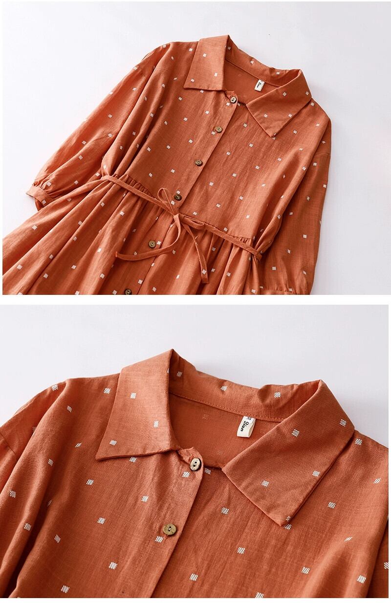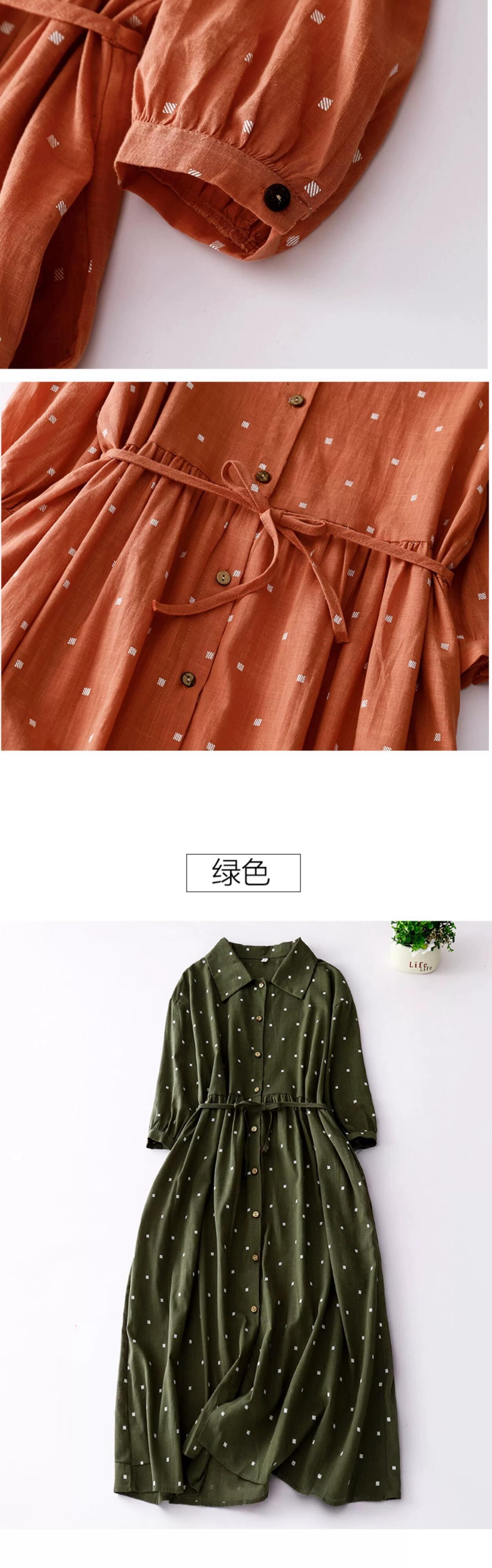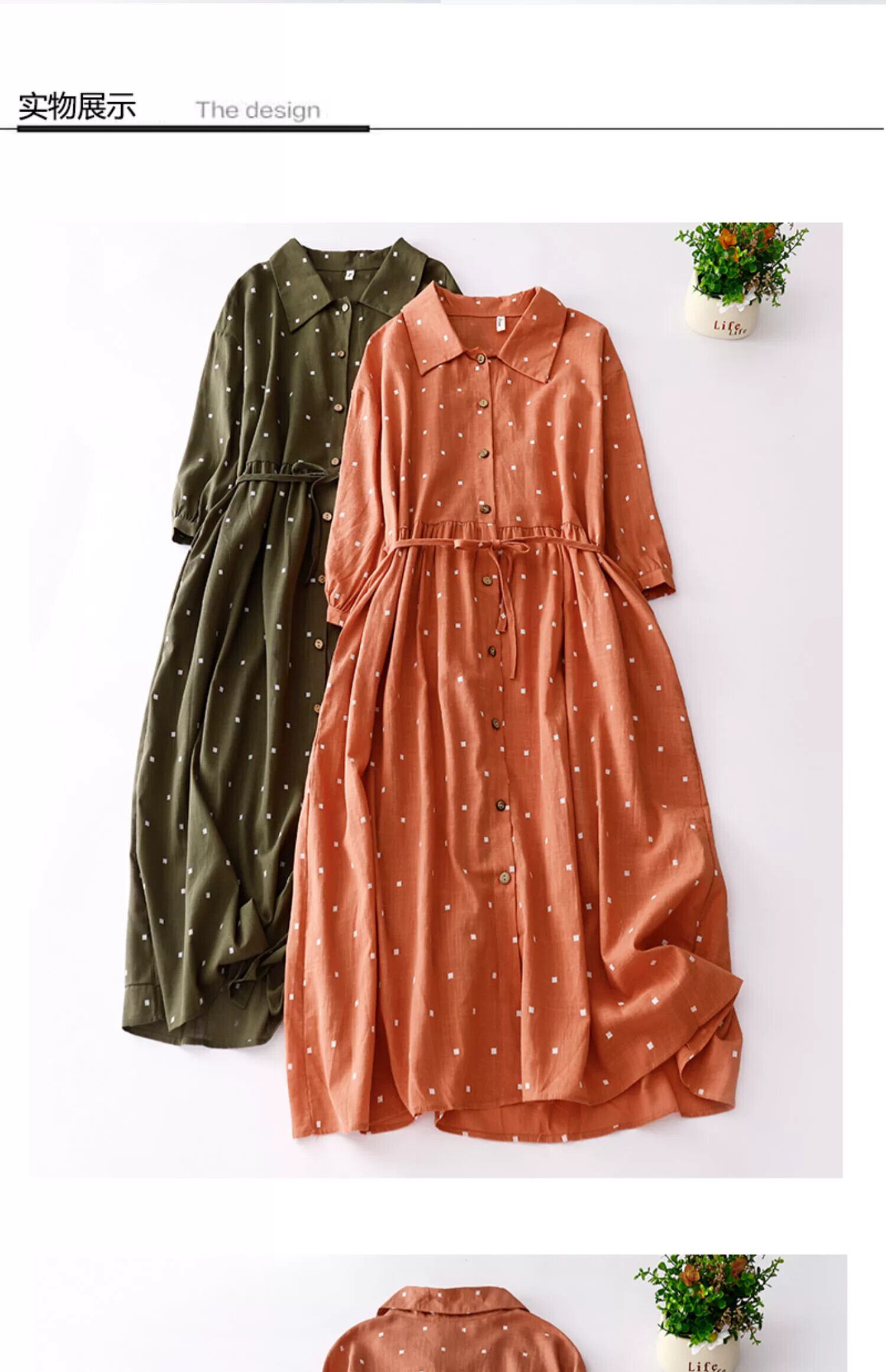 クリアランス クリアランス カウンター 牛用品撤去 レディース コットンとリネンの水玉模様のシャツドレス ルーズウエストタイ リネンロングスカート sine27135247823