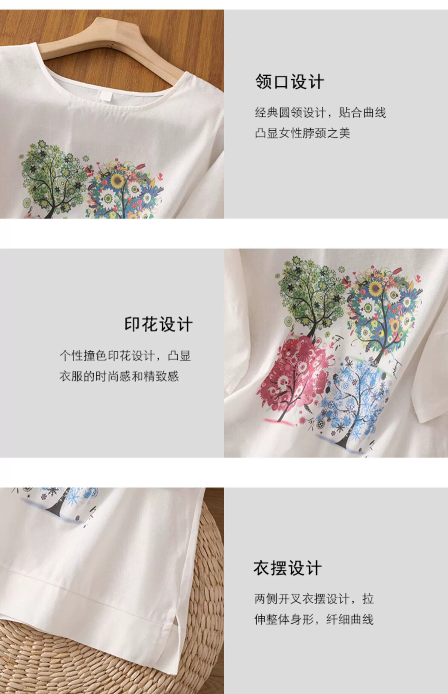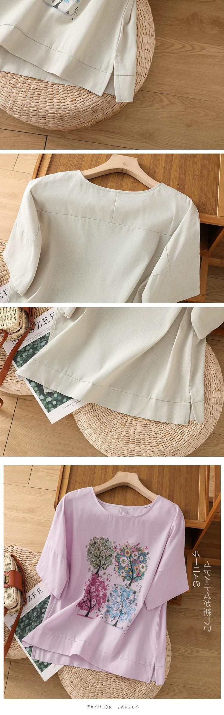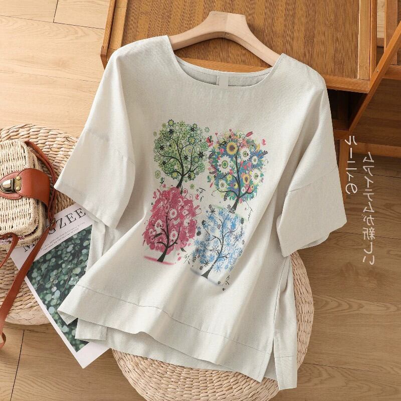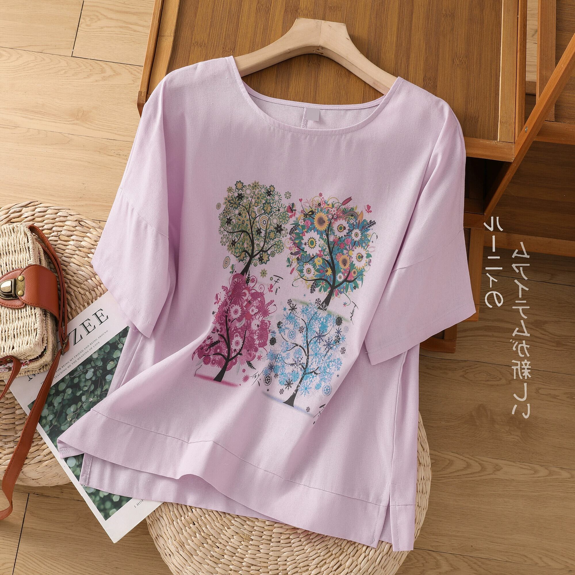 eign trade ese オリジナルシングルビッグネーム撤退レトロプリントリネン半袖 Tシャツレディースルーズラウンドネックコットンとリネントップ夏 サマー 夏物 Oネック sine67976836782