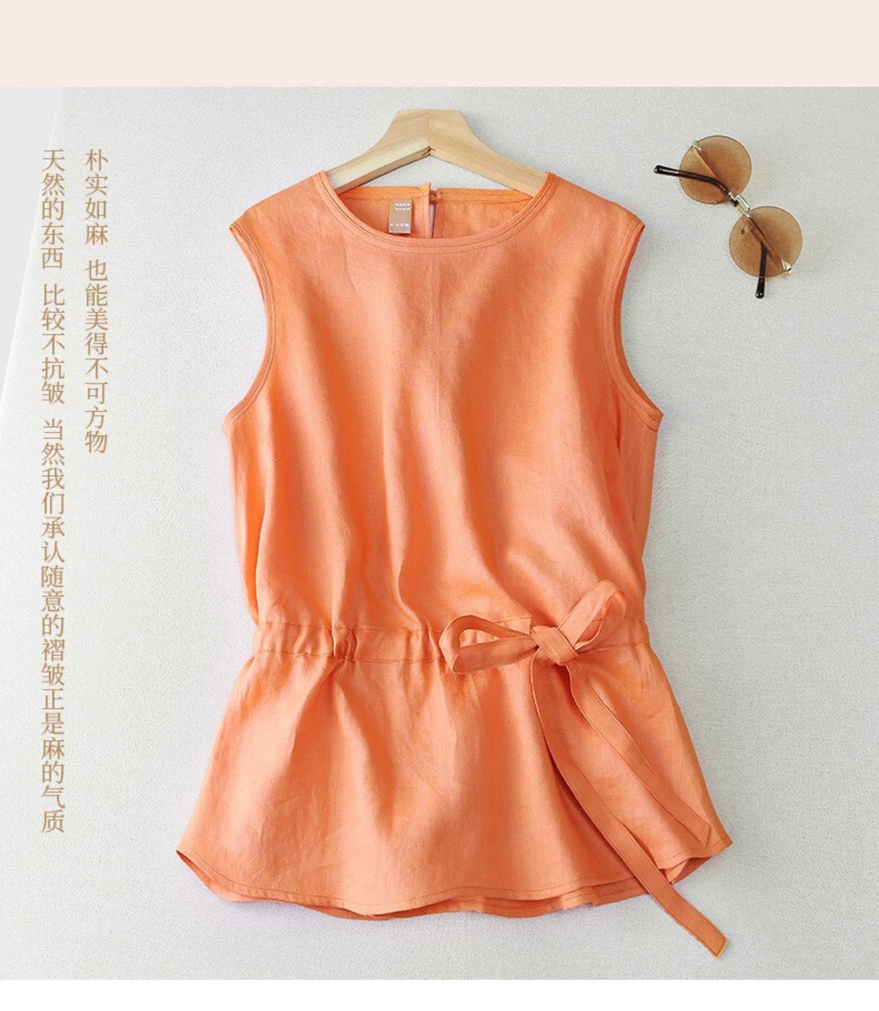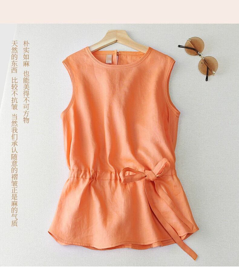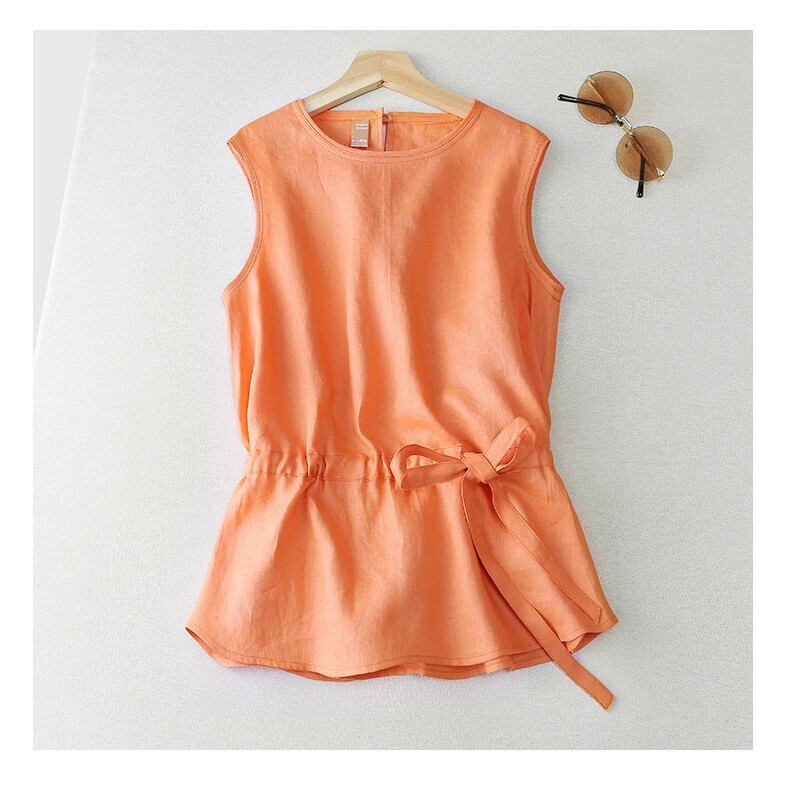 eign trade ese big-name カウンター シンプルで多用途なリネンベスト トップス ルーズレースアップ コットンとリネン Tシャツ レディース sine60691365210