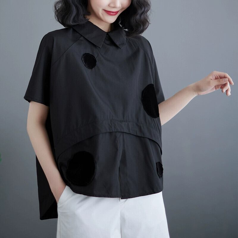 カウンター在庫処分品 水玉プリント半袖シャツ レディース ゆったり 大きいサイズ ドールカラー シャツ トップス 大きめサイズ sine14775773389