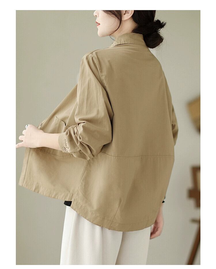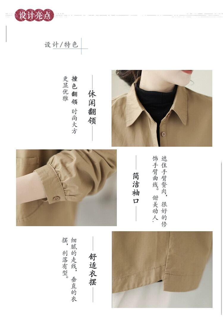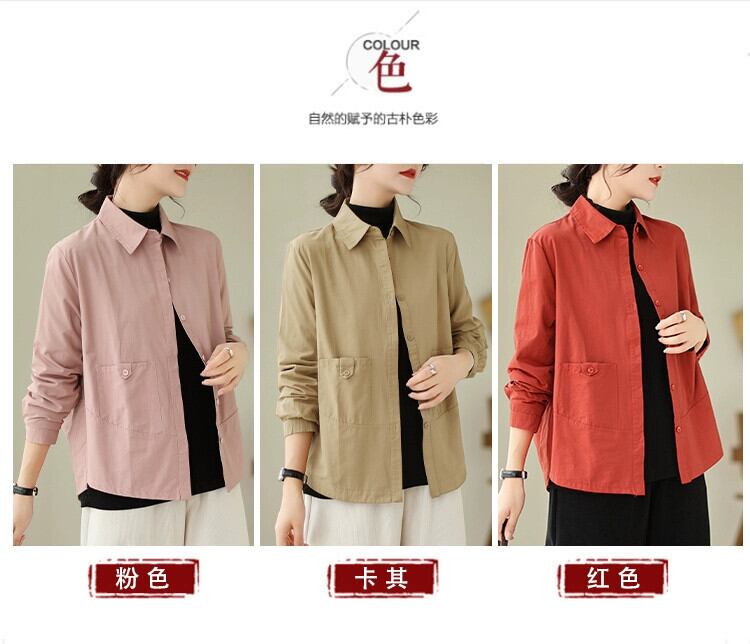 カウンタークリアランスグッズレトロ無地ラペルシャツジャケットレディースルーズカジュアルポロカラーシャツ ソリッドカラー sine57438301179