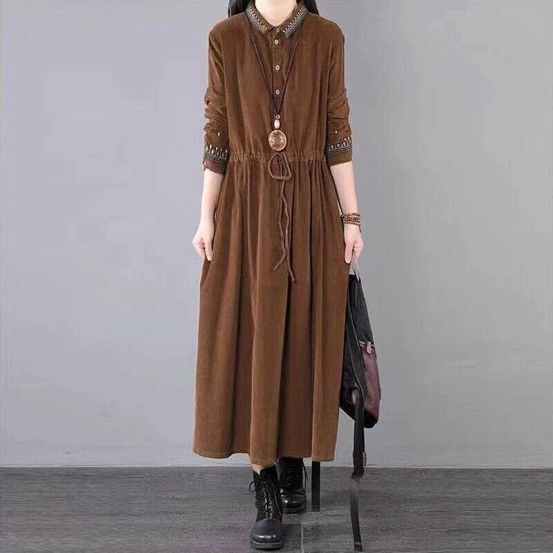 eign trade 割引ブランドテールグッズレトロ刺繍コーデュロイドレス女性のルーズウエストベルト付きコーデュロイシャツスカート レッド ハーネス sine30822692373