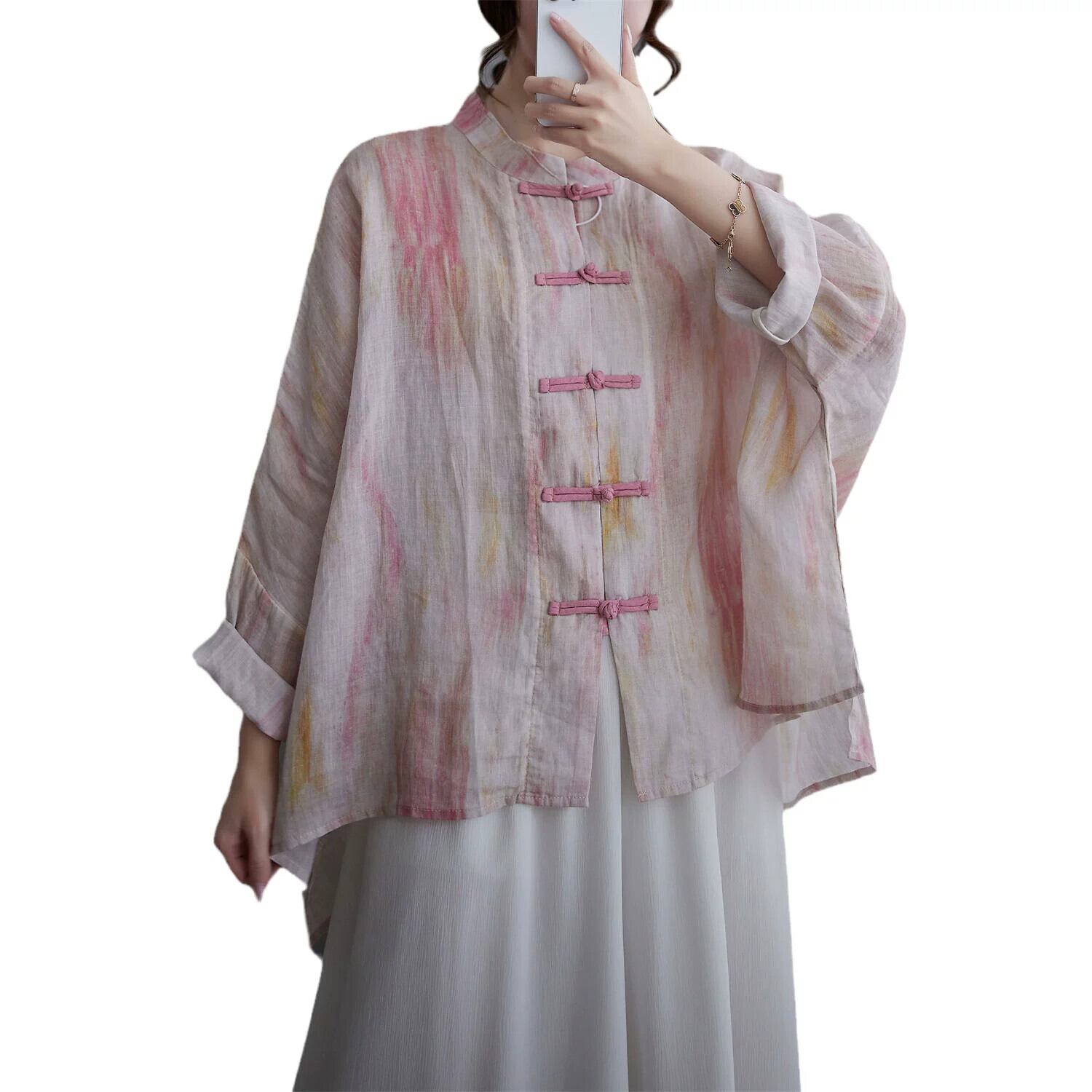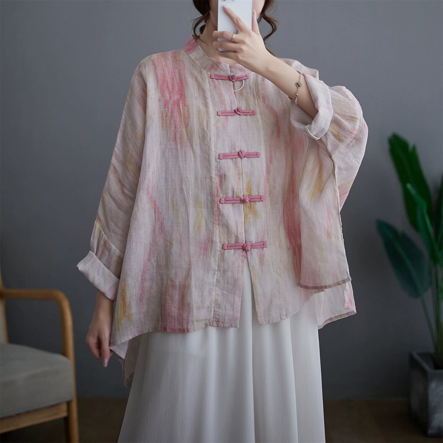クリアランスクリアランスカウンター牛グッズ撤去中国風綿麻スタンドカラーシャツ女性文学ルーズリネントップ秋 コットン オータム 秋物 sine79956581376