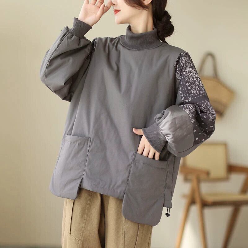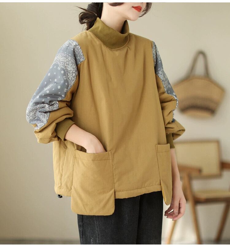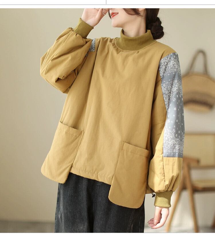第一線のブランド eign trade 撤退最後の在庫レトロキルティングハーフタートルネックスウェットシャツ女性ルーズスプライシングプリントプルオーバーコットンコート sine29592863934