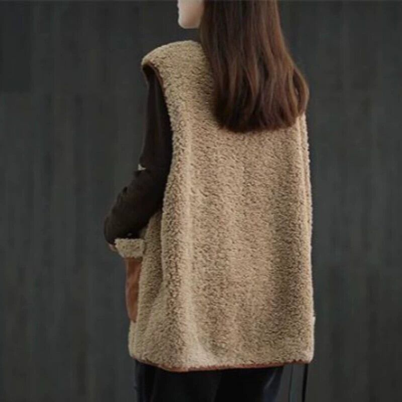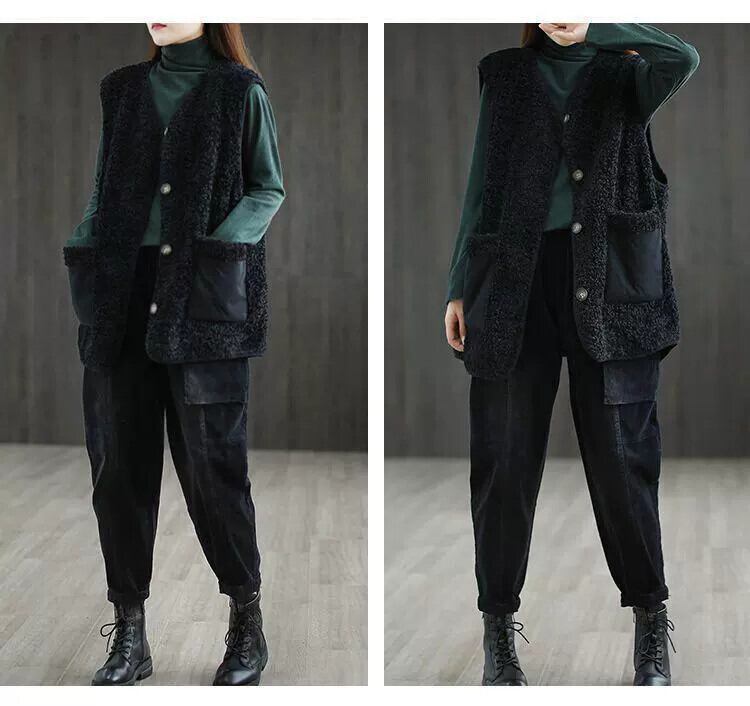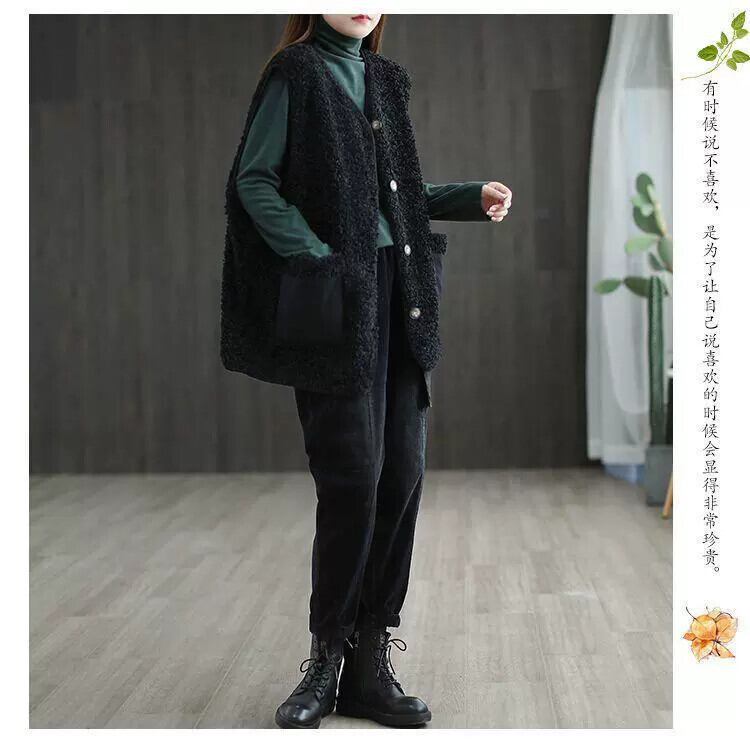 クリアランスクリアランスカウンター牛グッズ除去レトロ子羊ぬいぐるみベストレディースルーズ V ネックノースリーブベストジャケット冬 ウィンター 冬物 Vネック sine20607614413