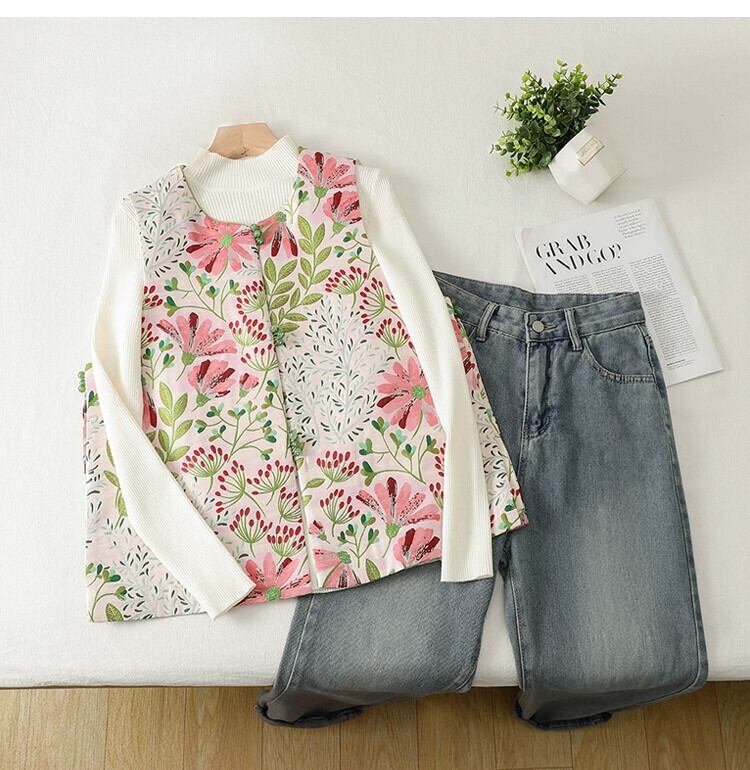 ビッグブランドテールグッズのクリアランスカウンター除去レトロ刺繍ベストジャケットレディースルーズプリントチョッキベストトップ秋 レッド オータム 秋物 sine91628317117