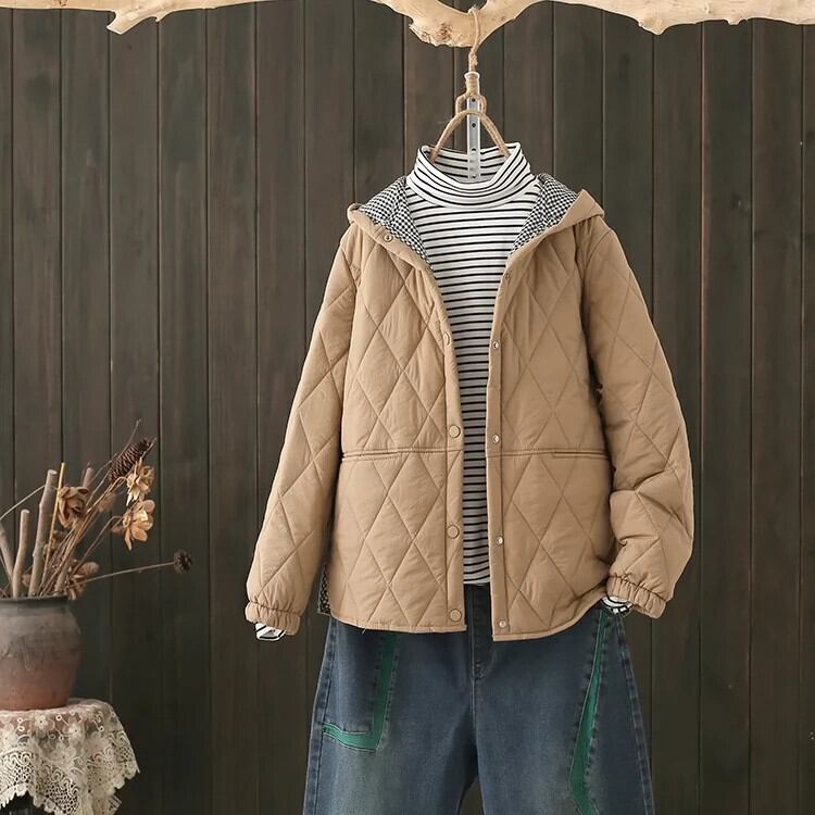 クリアランスカウンター最後の在庫レトロキルティングフード付きコットンコート女性ルーズ肥厚暖かいコットンコート冬 ウィンター 冬物 sine40945440018