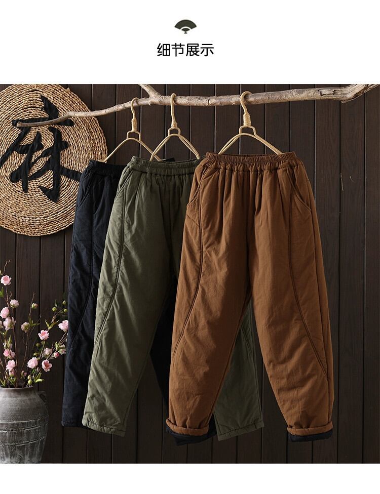 クリアランス漏れ〜カウンター最後の在庫キルティングと厚みのあるハーレムパンツの女性、レトロな弾性ウエストスリミングカジュアル暖かいコットンパンツ エラスティック 伸縮 sine68873498421
