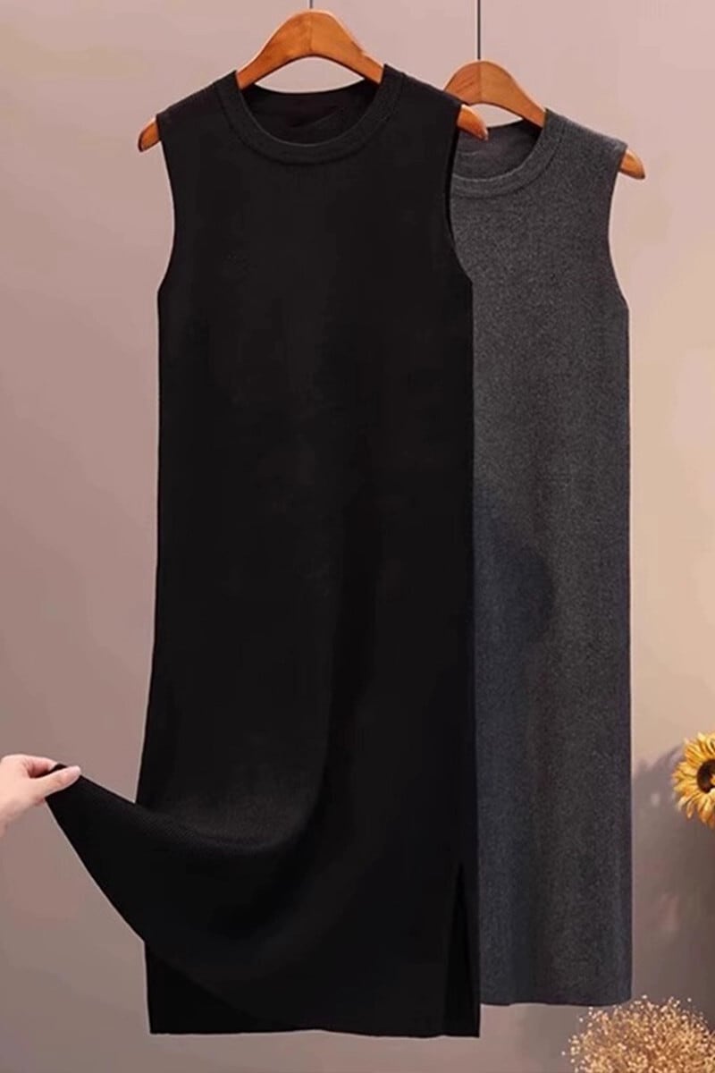ese オリジナル eign trade ブランド黒ニットベストドレス女性のカジュアルインナーラウンドネックボトミングセーターロングスカート ブラック Oネック sine98645787017