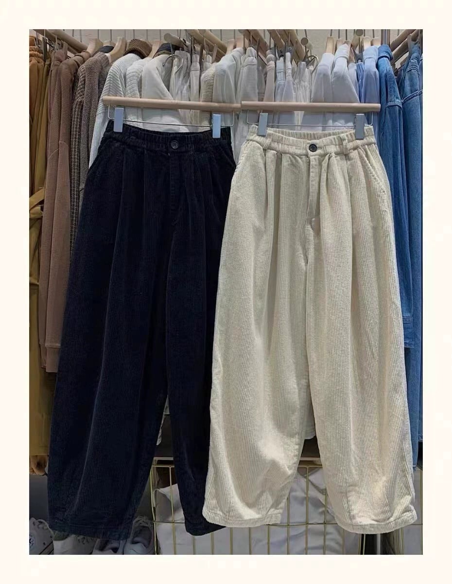 eign trade割引ブランドテールグッズレトロコーデュロイワイドレッグパンツレディース、ルーズハイウエストプラスベルベットと厚みのあるコーデュロイカジュアルパンツ sine86176788527