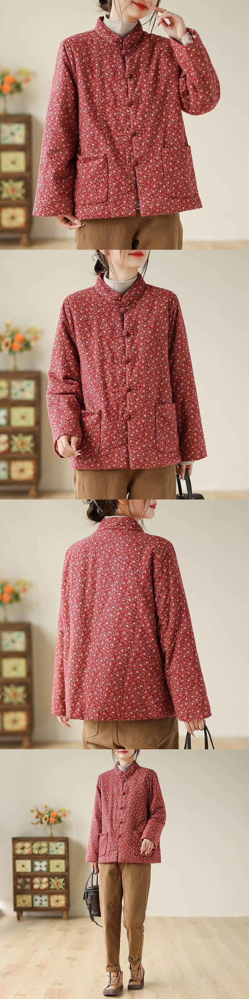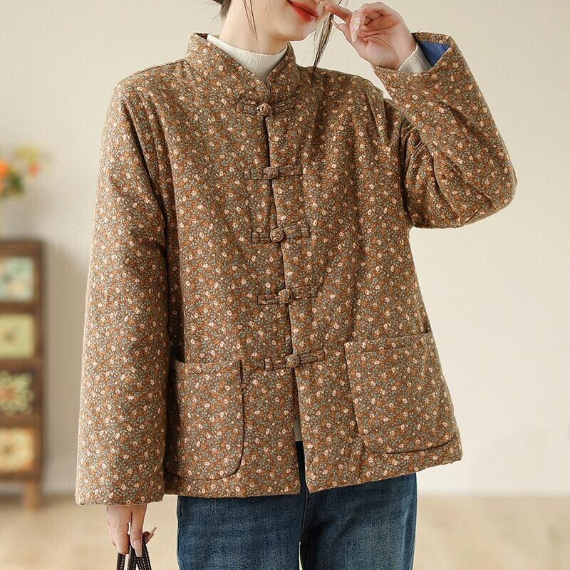 クリアランスクリアランスカウンター牛商品除去レトロ花柄コットンジャケットの女性の中国風プレートバックル肥厚暖かいコットンコート冬 ウィンター 冬物 sine84749468973