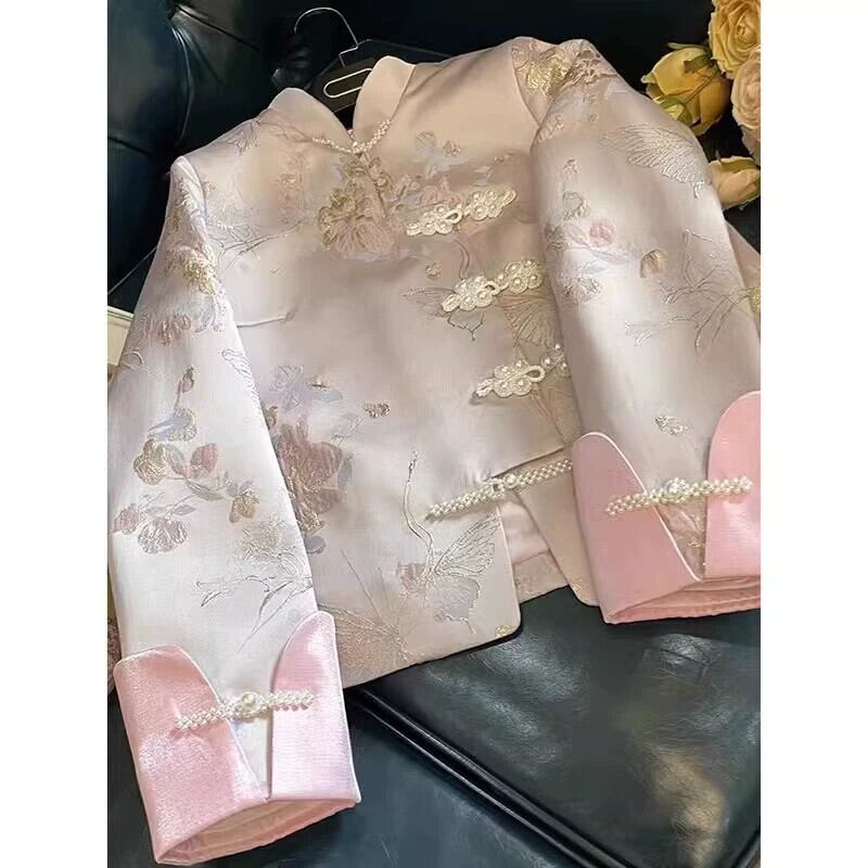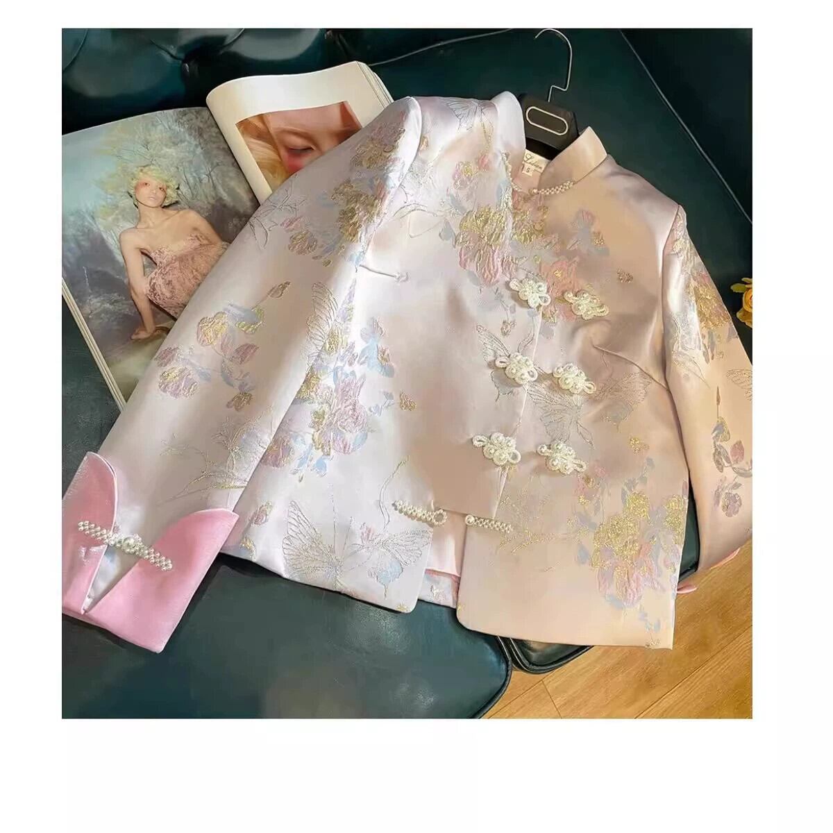 eign trade ese オリジナル注文ビッグブランド撤退新中国風ハイエンドバックルジャケット女性の国民風重工業ジャカードスタンドカラートップ sine37824783824